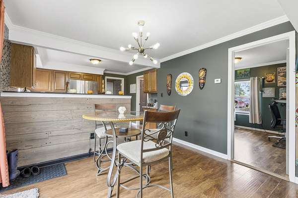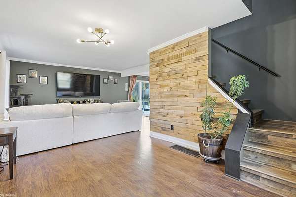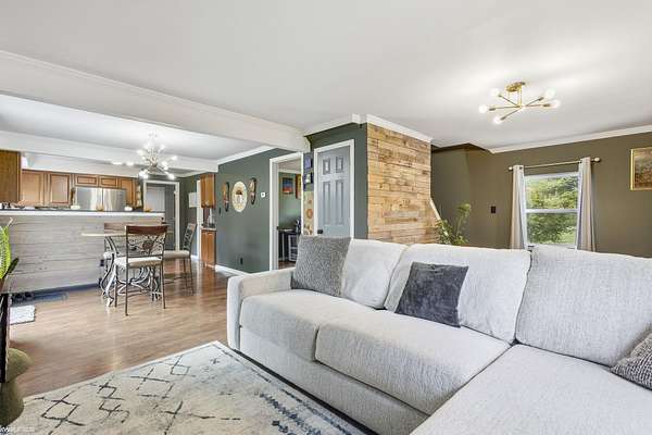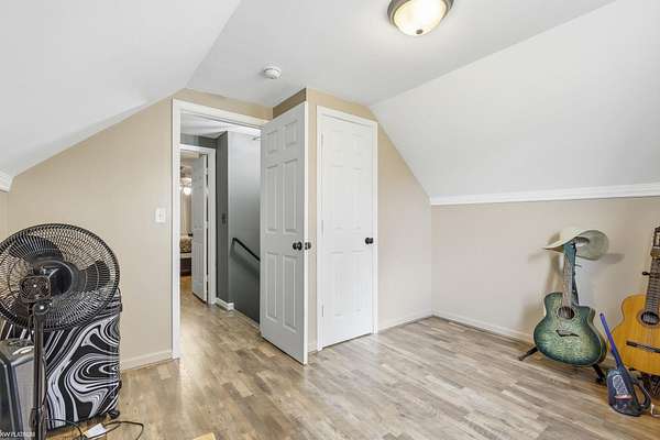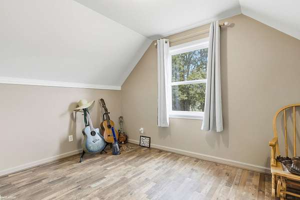 Discover your new sanctuary nestled in nature yet minutes from all city amenities. This picturesque property features partially fenced land with winding trails, offering abundant wildlife and peaceful forested charm. The home is open concept and thoughtfully updated: a roof installed just over a 10 years ago, furnace and air less than 5 years old, new flooring in the first-floor bedroom and on the stairs, plus upstairs bedrooms. You'll love the spacious sitting room, updated bathroom, and convenient first-floor laundry. This is the escape you've been waiting for--come see it today! 2 vaulted bedrooms upstairs.