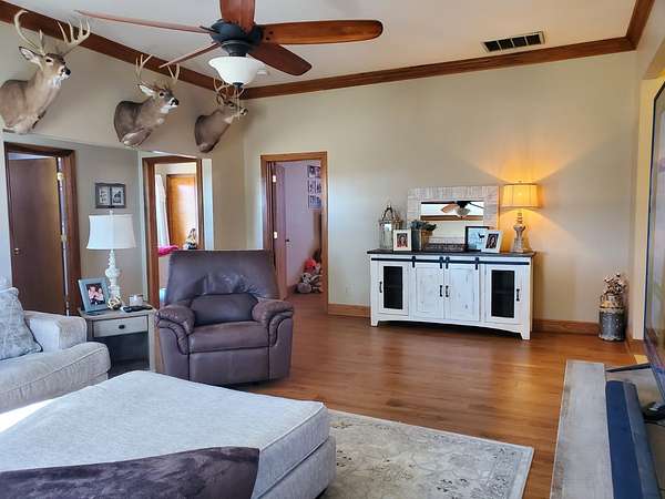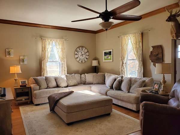 Escape to the peace and charm of country living in this beautifully maintained 4-bedroom, 3-bath farmhouse set on a picturesque 2.1-acre property. Step inside and you'll find a spacious living room, a bright, updated kitchen with stainless steel appliances, and plenty of windows that fill the home with natural light. The dining room/ Den and large laundry room add both comfort and convenience. Every room is generously sized and tastefully decorated, making this home truly ready for you to move right in. Enjoy outdoor living at its best with a wrap-around deck, perfect for relaxing or entertaining, and a large covered porch off the walk-out Lower level. The unfinished Lower level includes a large 2-car garage, offering plenty of storage or workshop space. For those who love rustic charm, the property also includes a 22x24 outbuilding and a classic 50x60 barn with loft-ideal for storage, hobbies, or even small livestock. This home offers the perfect blend of modern updates, country character, and serene surroundings. Highlights: 4 Bedrooms | 3 Full Baths Updated Kitchen with Stainless Steel Appliances Large Living Room & Dining Room Laundry Room Wrap-Around Deck & Covered Porch, 2-Car Garage 22x24 Outbuilding + 50x60 Barn with Loft 2.1 Acres of Peaceful Country Living Don't miss this rare opportunity to own a stunning farmhouse that combines timeless charm with modern comfort! Schedule your private showing today