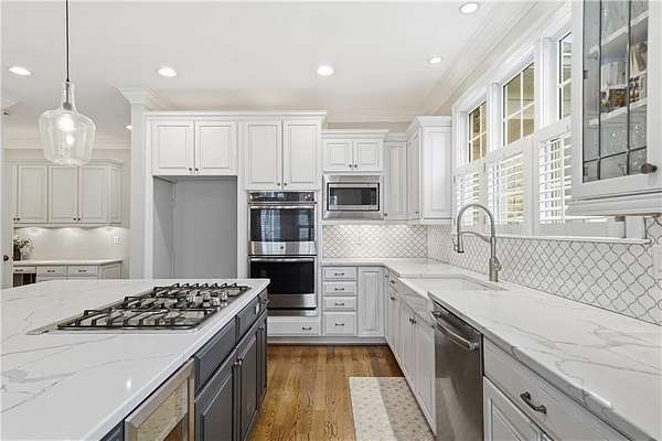 - Dishwasher, Double Oven, Gas Cooktop, Microwave, Refrigerator, Tankless Water Heater