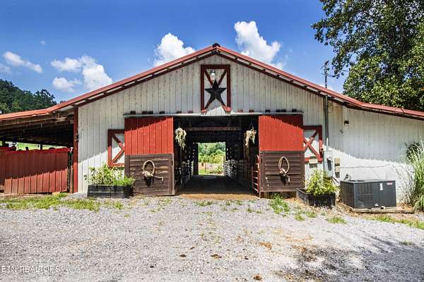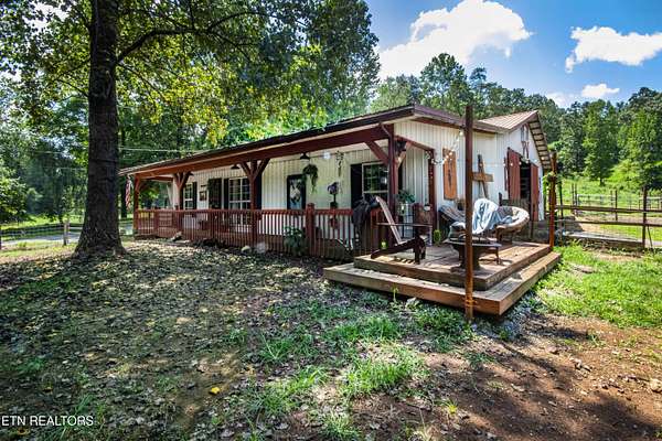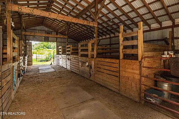 Welcome to your dream 22.8-acre farm in Madisonville! The stunning main home is a ranch that offers 3 spacious bedrooms and 2 bathrooms across 1,920 square feet of beautifully designed living space. Enjoy the charm of whitewashed pine walls, a luxurious master suite with a trey ceiling, double walk-in closets, and a walk-in shower in the master bath. With 9.5-foot ceilings, new appliances, a durable metal roof, and a new HVAC and water heater, this home is move-in ready. Relax on the expansive 10x40-foot covered front porch overlooking a year round view of the Smoky Mountains. Equestrian enthusiasts will love the 38x40-foot barn, which includes 7 stalls (expandable to 10), hot and cold water, electricity with individual outlets for each stall, and all stall mats will remain with the home. Attached to the barn is a cozy 2-bedroom, 1-bath home with 640 square feet and its own 40-foot covered porch. The property also features a large riding arena (280x120 feet) multiple paddocks, a wash station, and plenty of covered storage attached to the barn. Additional amenities include a 24x8-foot new storage shed, another large outbuilding, a creek, and a fully fenced lot. Don't miss this rare opportunity to own a versatile and beautiful property! Sellers are highly motivated and ready to entertain all reasonable offers!