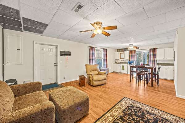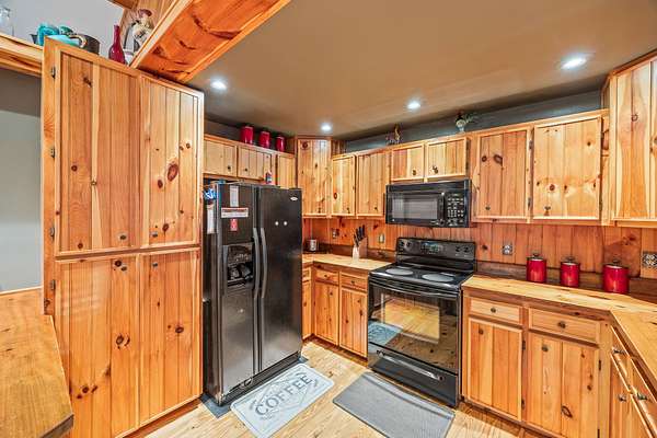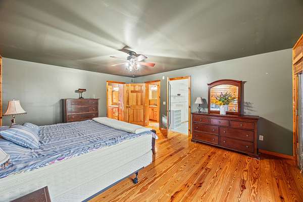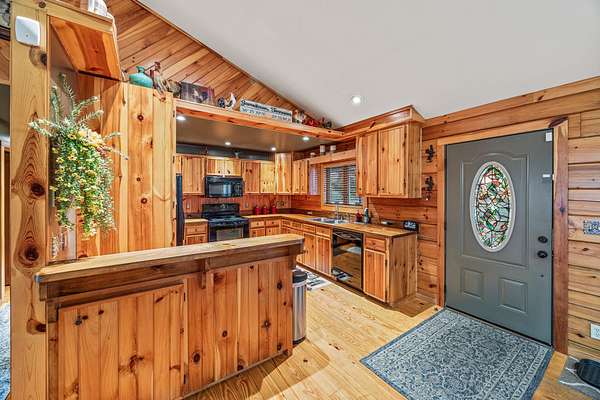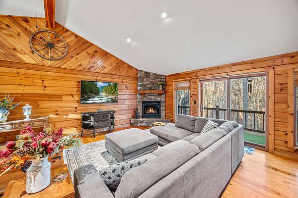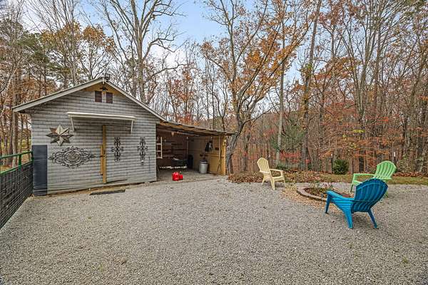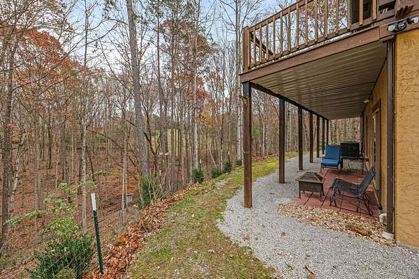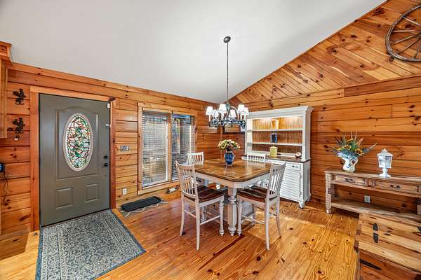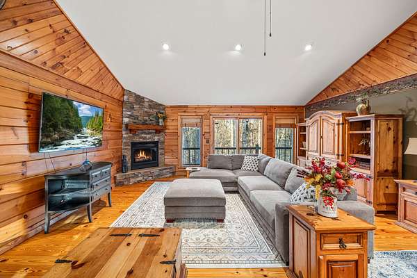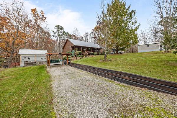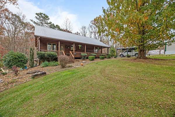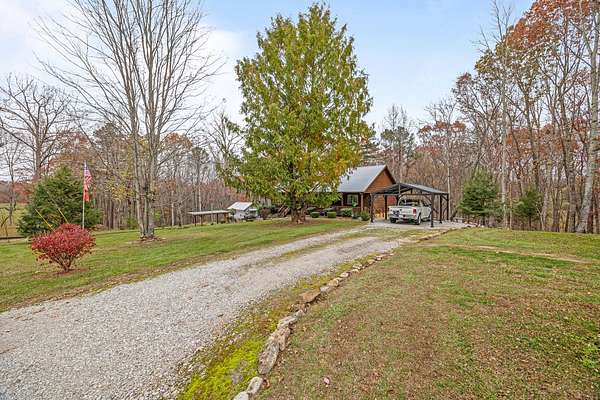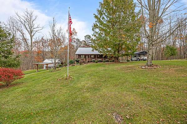 Escape to the tranquility of this beautifully maintained two-story log cabin nestled at the end of a quiet dead-end road. Surrounded by 300 acres of rolling pastureland, this home offers unparalleled privacy, charm, & scenic beauty. With only 5 homes on the street & located on unrestricted land, this property offers a rare combination of seclusion & convenience, just minutes from Jamestown, local schools, & the amenities of the Upper Plateau region. The main level welcomes you with a spacious open floor plan, soaring cathedral ceilings, & a cozy natural gas log fireplace, perfect for gatherings or quiet evenings. The well-appointed kitchen features plenty of cabinetry, making it ideal for everyday living or entertaining. The main level also includes a primary bedroom with ample closet space, an additional room with a closet that could function as an office or second bedroom, and large windows that flood the space with natural light while showcasing stunning views. The finished walk-out basement doubles as a self-contained living space, complete with 2 additional bedrooms, its own laundry area, & a natural gas fireplace. Step outside to discover the serene beauty of the expansive back deck. The yard is beautifully landscaped & includes a fire pit for evenings under the stars. The property also features 2 carports (one for each level), a detached garage, & a storage shed. Additional amenities include: 2 septic systems, 2 laundry areas (one on each level), a storm safe room for added security, fiber-optic internet for modern connectivity, a 2019 HVAC system & logs sealed just 3 years ago, & electric central heat & air & natural gas fireplaces on both levels for year-round comfort. Schedule your private showing today! *The seller captured a few photos of the property in bloom this spring to showcase its seasonal beauty.*
