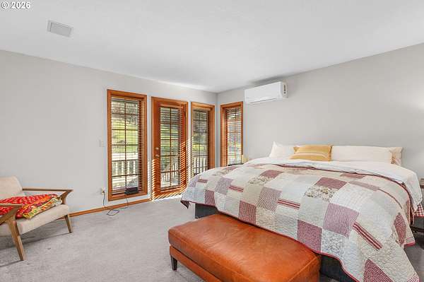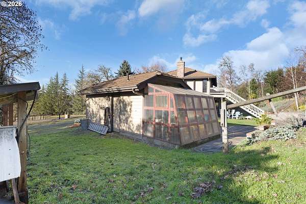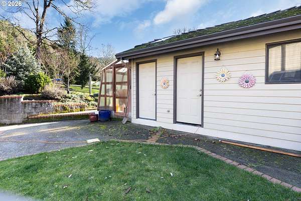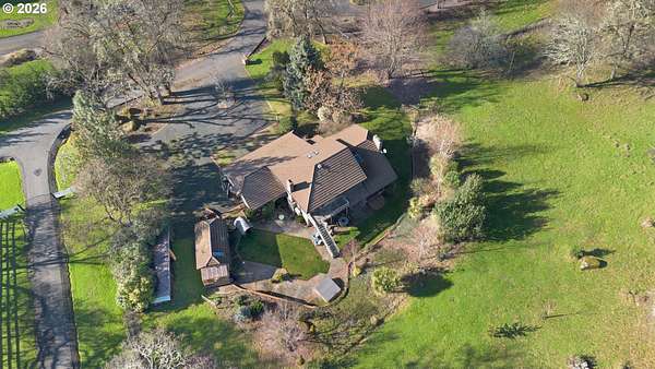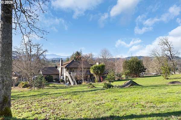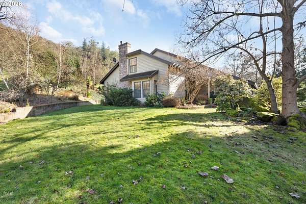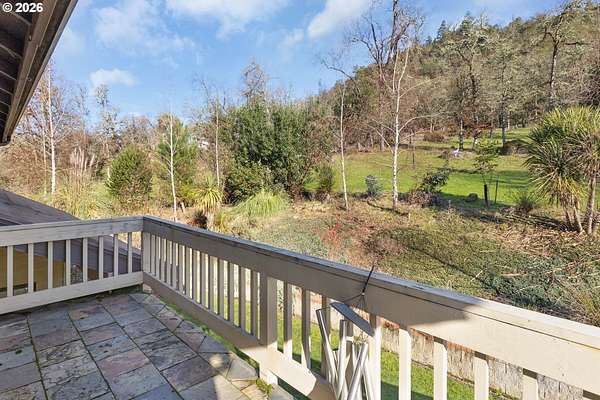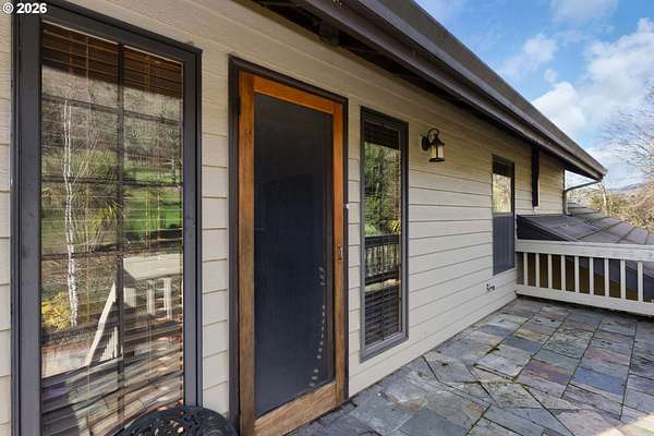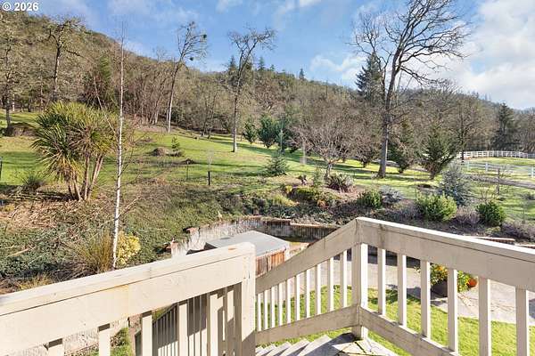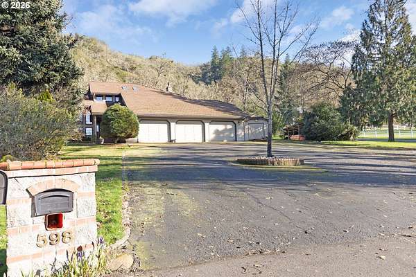 Welcome to 598 Winter Creek Lane in the highly sought-after Fisher Road/Garden Valley area of the North Umpqua River Valley. This just-over five-acre property offers a gorgeous, tranquil, and secluded setting with mountain and valley views, while remaining close to the Roseburg Country Club and the North and Main Umpqua Rivers for recreation. The property also includes valuable water rights for irrigation.The 2,266 square foot custom contemporary home has received extensive updates since 2019. It features four bedrooms, two and a half bathrooms, a living room, and a family room. Quality upgrades include Pella wood windows, solid core interior and exterior doors, radiant floor heating with a new on-demand gas water heater, two new gas fireplaces, and new ductless heating and cooling units. Additional improvements include new engineered hardwood floors and carpet, fresh interior paint, new blinds, light fixtures, and faucets. Washer and dryer hookups are located on both levels, including one in the primary bathroom.The primary suite is a private retreat with a slate-tiled balcony leading to a built-in hot tub, walk-in closet, double vanities, and soaking tub. Two additional upper-level bedrooms offer beautiful views, and a 4th bedroom is located on the main level. The sunken living room features a two-story tongue-and-groove ceiling and floor-to-ceiling windows, which flood the area with natural light. The dining room opens to the rear patio. The kitchen includes granite countertops, built-in appliances, pantry, and adjoins the cozy family room with gas fireplace.An oversized three-car garage offers custom cabinetry, floor tiles, and workshop space. The property also includes a garden shed w/full bath, greenhouse, general-purpose shelter, perimeter and cross fencing, and a generator hookup. A rare opportunity to enjoy privacy, quality upgrades, and beautiful surroundings in one of the Umpqua Valley's most desirable locations.