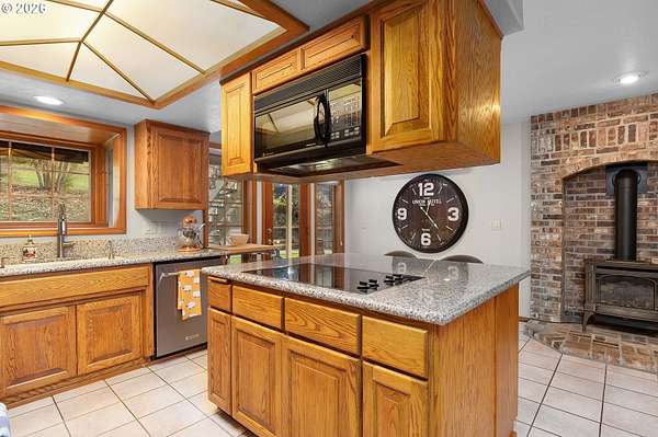 - Builtin Oven, Cooktop, Dishwasher, Granite, Island, Microwave, Pantry, Range Hood, Solid Surface Countertop, Stainless Steel Appliance, Trash Compactor