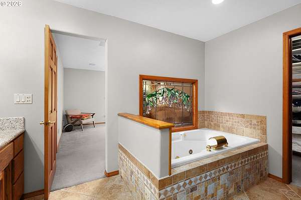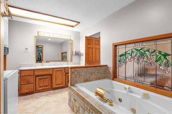 - Garage Door Opener, High Ceilings, Jetted Tub, Laundry, Skylight, Slate Flooring, Soaking Tub, Tile Floor, Vaulted Ceiling, Wallto Wall Carpet, Wood Floors
