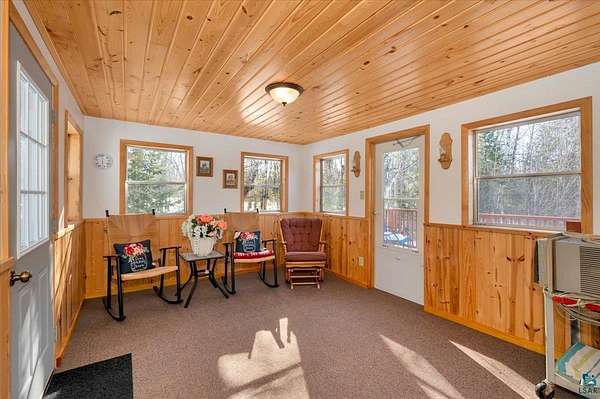 Well maintained 3 bedroom, 2 bathroom, with a 2 car, home in Grand Lake Township on 4.3 acres of wooded land. This home has been owned and lovingly maintained by the same owner for the last 30 years! See the attached list of improvements and maintenance. This split level home has a large entry unlike most splits. There is a ton of room for everyone to come inside and take off their gear at the same time while not falling all over everyone's shoes. The living room is large, has newer carpet flooring and a large bay window overlooking the front yard. The eat -in kitchen has painted wood cabinets, laminate counter tops, white appliances that are all about 5 years old, vinyl plank flooring, a dishwasher gas stove, and a traditional refrigerator. There is also a large patio door to a 3 season sunroom that has access to the private deck off the back of the house. The main floor bathroom is recently updated and has high quality finishes such as ceramic tile flooring and tub surround. The bedrooms feature carpet flooring, vinyl windows. They all are pretty decent in size and have good closet space. The lower level has tons of storage, a 3/4 bathroom, a utility room, a large family room, another cold storage room with a window and an area for a workshop! This basement is in great shape. Many updates include newer windows, roof about 15 years old, vinyl siding, new water heater in 2026, furnace 5 years ago, washer and dryer in 2018. There is even a water softener that is owned and only 6 years old. Gas usage varies from $60 to $150 per month, electric varies from $60 to $100 per month. This is a great place to get away from the action and yet be close to town. Back of parcel borders a large parcel of MN land.
