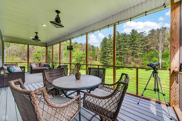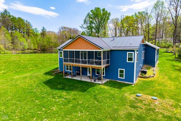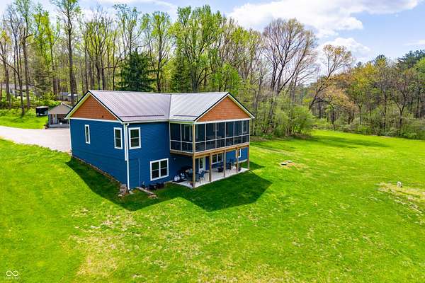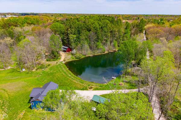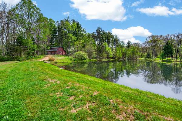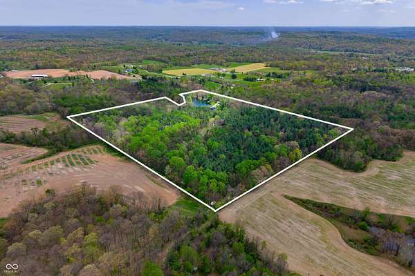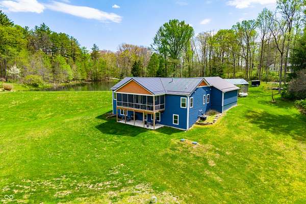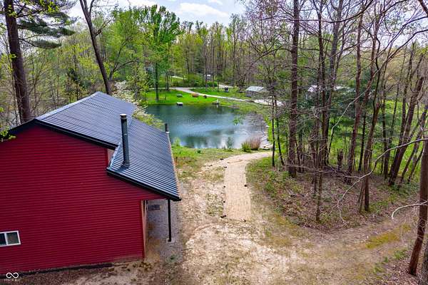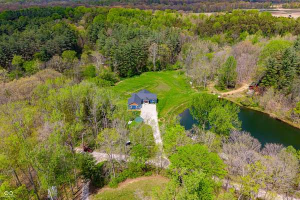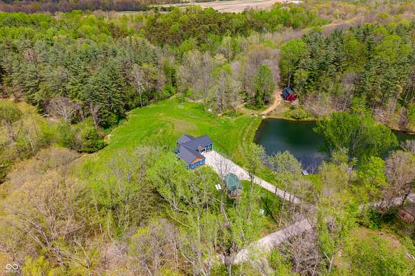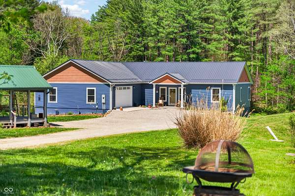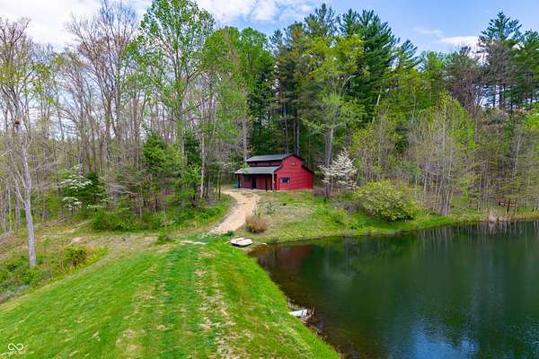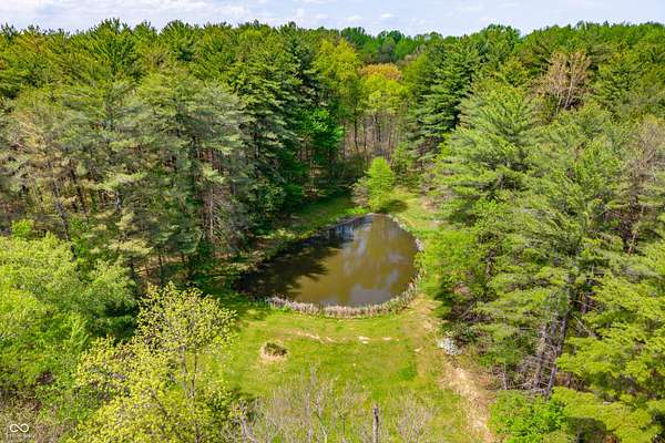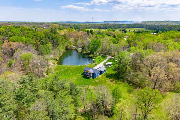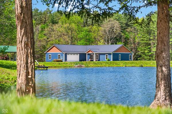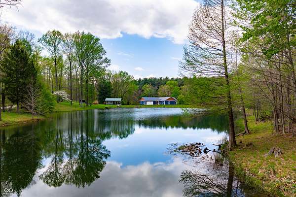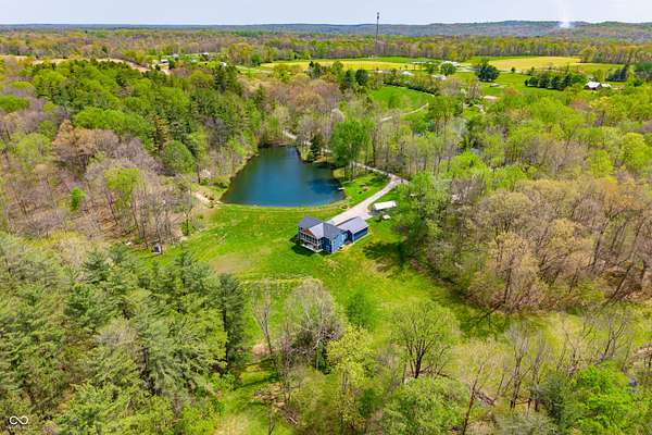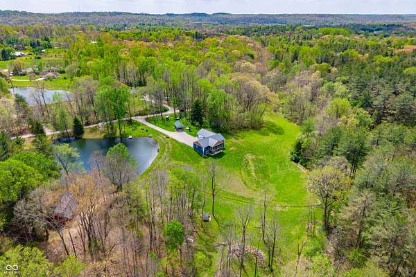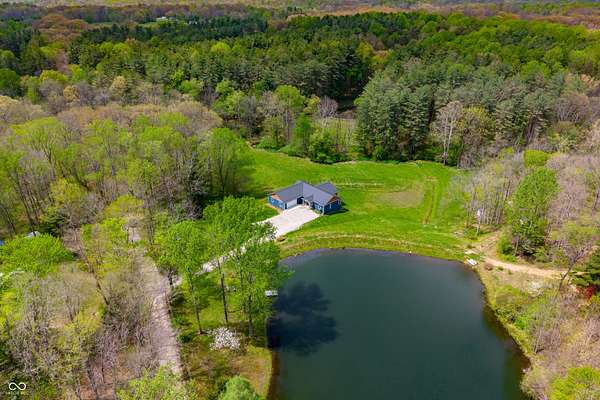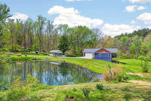 ESCAPE to Your PRIVATE WOODED 50-Acre Sanctuary in Northern Brown County! Rarely do you find a property that offers both total SECLUSION and seamless CONVIENCE. Nestled at the end of a quiet dead-end road, this sprawling 50-acre estate welcomes you with a pristine pond and the serene sounds of a winding creek. Step inside this custom-built, 3,600 sq. ft. RANCH to find an interior that truly defies expectations. The heart of the home is a magnificent open-concept family room and beautiful kitchen, anchored by a stunning stone FIREPLACE, handcrafted cabinetry, and elegant granite countertops. The thoughtful floor plan features 2 PRIMARY SUITES on the MAIN LEVEL, plus a dedicated home office. Each bathroom styles a uniquely made vanity and sink. A favorite of the current owners, the SCREENED-IN BACK PORCH offers a front-row seat to local wildlife at all hours. The fully finished WALKOUT BASEMENT features a massive open living area, a kitchenette, and a private 3rd bedroom with a full bath-perfect for guests or a multi-generational setup. The oversized 2 car garage is 30'x22' w/9' ceiling and a 14'x8' bump out. The rustic 30x40 pole barn (with new siding/roof and an insulated workshop) sits on the hill overlooking the pond. The charming 15x15 "She-Shed" or guest house is insulated and already plumbed for a full bath. 40 acres of the woods is CLASSIFIED FOREST, allowing for much lower property taxes. PRIME LOCATION: 2 MINUTES TO SR135; 12 minutes to NASHILLE RESTAURANTS, SHOPS, DISTILLERIES, Brown County MUSIC CENTER, Brown County State Park; and JUST 20 minutes NORTH to TRAFALGAR; 25 minutes to LAKE LEMON; and commute to downtown Indy or the airport right at an hour.
