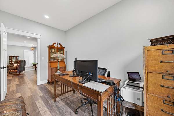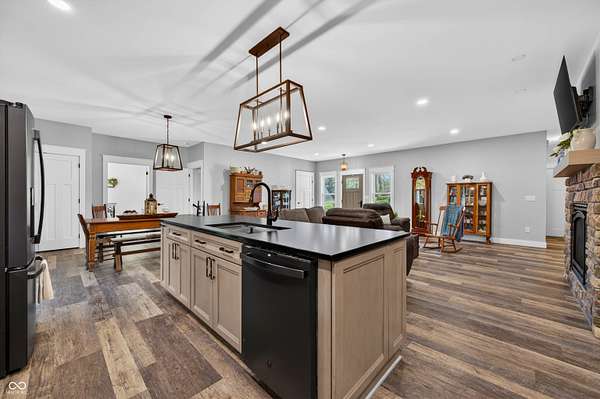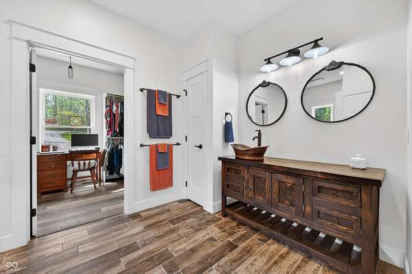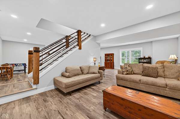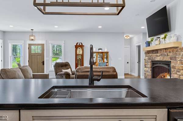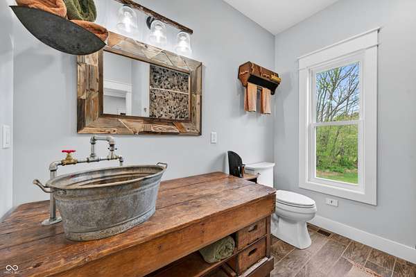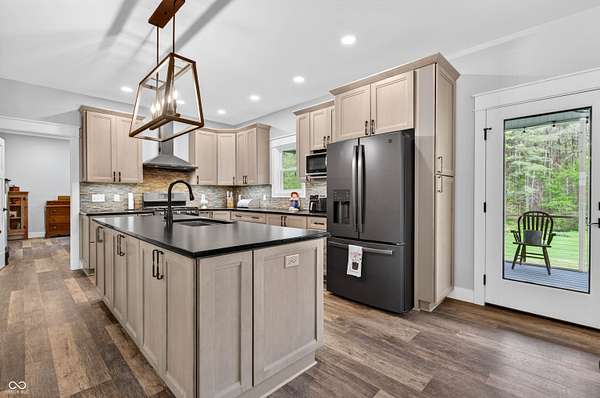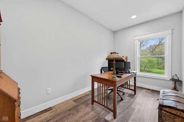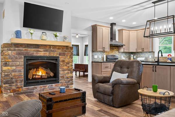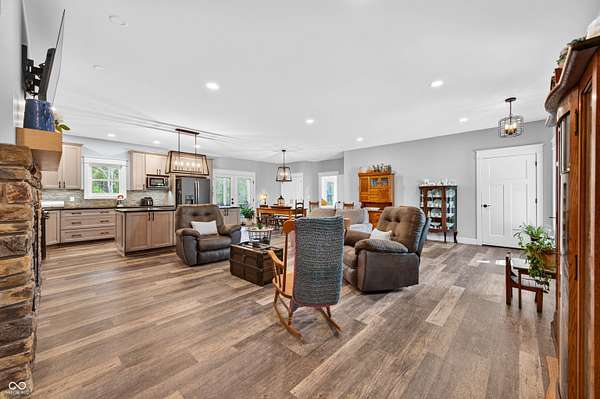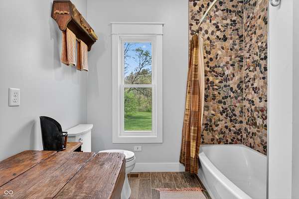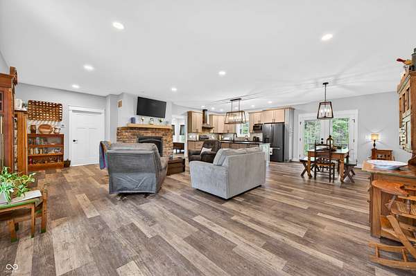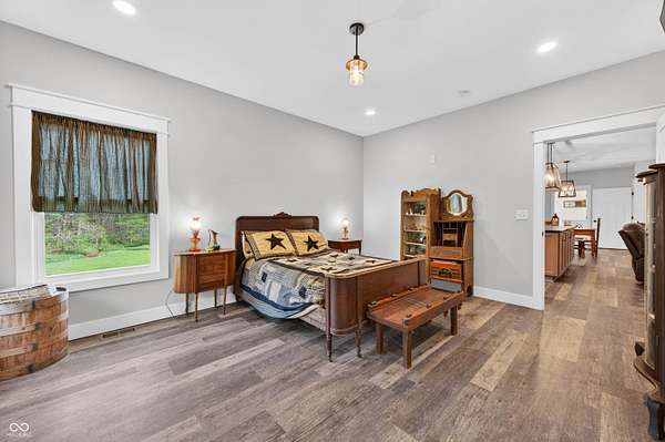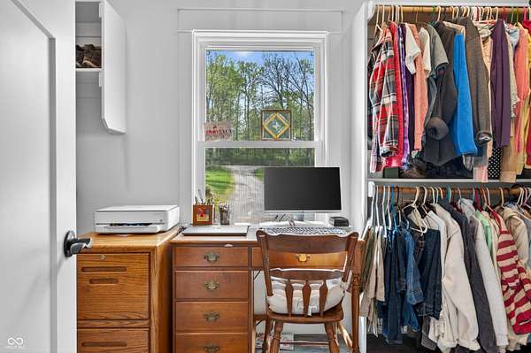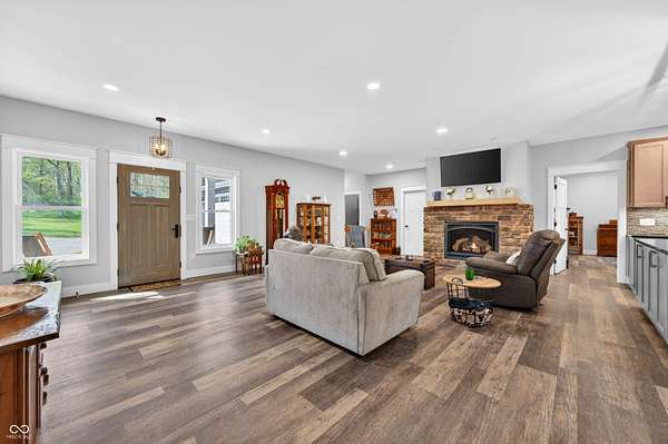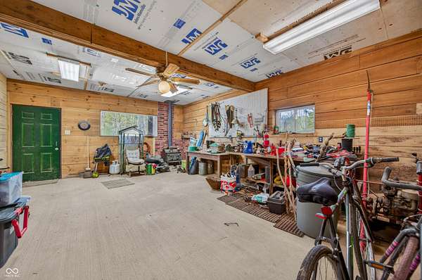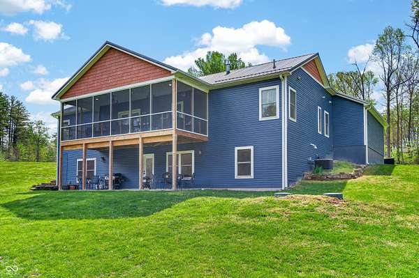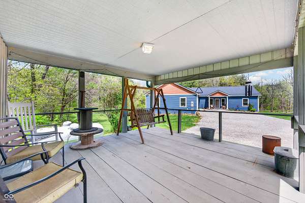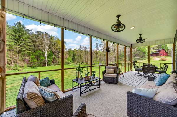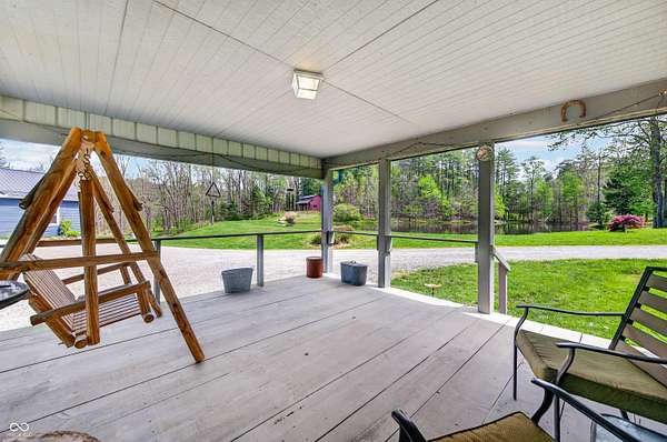 ESCAPE to Your PRIVATE WOODED 50-Acre Sanctuary in Northern Brown County! Rarely do you find a property that offers both total SECLUSION and seamless CONVIENCE. Nestled at the end of a quiet dead-end road, this sprawling 50-acre estate welcomes you with a pristine pond and the serene sounds of a winding creek. Step inside this custom-built, 3,600 sq. ft. RANCH to find an interior that truly defies expectations. The heart of the home is a magnificent open-concept family room and beautiful kitchen, anchored by a stunning stone FIREPLACE, handcrafted cabinetry, and elegant granite countertops. The thoughtful floor plan features 2 PRIMARY SUITES on the MAIN LEVEL, plus a dedicated home office. Each bathroom styles a uniquely made vanity and sink. A favorite of the current owners, the SCREENED-IN BACK PORCH offers a front-row seat to local wildlife at all hours. The fully finished WALKOUT BASEMENT features a massive open living area, a kitchenette, and a private 3rd bedroom with a full bath-perfect for guests or a multi-generational setup. The oversized 2 car garage is 30'x22' w/9' ceiling and a 14'x8' bump out. The rustic 30x40 pole barn (with new siding/roof and an insulated workshop) sits on the hill overlooking the pond. The charming 15x15 "She-Shed" or guest house is insulated and already plumbed for a full bath. 40 acres of the woods is CLASSIFIED FOREST, allowing for much lower property taxes. PRIME LOCATION: 2 MINUTES TO SR135; 12 minutes to NASHILLE RESTAURANTS, SHOPS, DISTILLERIES, Brown County MUSIC CENTER, Brown County State Park; and JUST 20 minutes NORTH to TRAFALGAR; 25 minutes to LAKE LEMON; and commute to downtown Indy or the airport right at an hour.