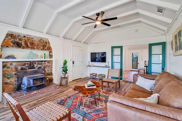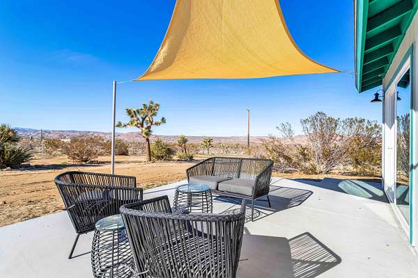 Welcome to the best kept secret in Joshua Tree, your own gated and fully fenced private oasis on 10 acres. This rare offering includes two separate 5-acre parcels, featuring two beautifully remodeled homes and a charming casita, all thoughtfully updated in 2022. In total, this extraordinary property offers 8 bedrooms + 1 loft + 5.5 bathrooms across three beautifully remodeled living spaces, providing versatile options for personal use, hosting, or income potential. This property is Ranch Ready! with 10 acres of open land and access to nearby riding trails, this property is perfect for horses, barns, or a custom equestrian setup. Plenty of space to build your dream ranch! Main House - known as the Mainstay- 3 bedrooms, 1 loft, and 2 full bathrooms, a state of the art kitchen and more Second Home - known as the Cowgirl- 4 bedrooms, 2 full bathrooms, and a half bath Studio Casita- known as the quiet Farm boy- 1-bedroom studio with Murphy bed and1 full bathroom Additional highlights include leveled parking for up to 25 vehicles, designated walkways to each home, a large flat area ideal for yoga sessions, outdoor dining, or events, and a built-in fire pit for cozy evenings under the stars. Each structure features updated electrical panels prepped for solar installation, and the entire property is enclosed with 6-foot privacy fence, creating a secure and serene environment. Set amongst ancient boulders, iconic Joshua Trees, and surrounded by rocky hills, this serene and private property offers breathtaking views, vibrant sunrises, glowing sunsets, and star-filled night skies. To top it all off, there is 20 acres of protected BLM land in front of the property that can not be built on. Honestly, the pictures and videos do not do it justice, this property is a must see to truly appreciate! This is a prime location just minutes from the Joshua Tree National Park, JT Village, restaurants, shopping, art galleries, schools, and medical facilities. Enjoy unmatched hiking, climbing, and nature experiences right at your doorstep. With gated privacy, exceptional views in every direction, and no light pollution, this property is perfect for investors, creatives, nature-lovers, and those seeking peace, beauty, and possibility. Don't miss this unique chance to own one of Joshua Tree's most iconic and versatile properties. The possibilities are endless - make it your private retreat, family compound, ranch haven or high-demand short-term rental.