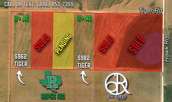 OWNER FINANCING OFFERED! If you have been on the search for affordable rural land in ROPES ISD with some actual size, without a stack of deed restrictions, AND with the ability to build a custom dream home or even a BARNDO...we have got the land for you! Feel the peace of living in the country without being stacked on top of neighbors with the largest land tracts available in the Ropesville area! A quick 20 minute drive to Lubbock for all your needed city amenities. Lyntegar Electric on Tiger Road. Deed restrictions kept a minimal to maintain a beautiful area, but free enough to truly enjoy country living. Owner financing also offered! ONLY 6 TOTAL land tracts offered, and there's only 2 left now! Call before they're all spoken for. Tracts 2-6 are all 11.04 acres each.