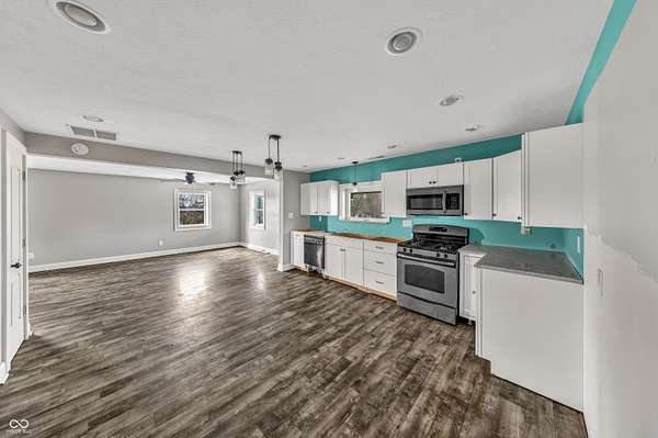 Est $6,450/moMulti use building--possibilities are endless! Formerly a gas station (no tanks on site) could easily be used as a gas station, convenience store, maintenance shop or made into multiple storefronts. Consisting of over 5400 sf with multiple bays, upstairs living quarters for additional income on 1.71 acres (2 parcels). Great location with high traffic count. High visibility with easy egress/ingress. Close proximity to I-69, St. Rd 32, St. Rd 9 and St. Rd. 13.