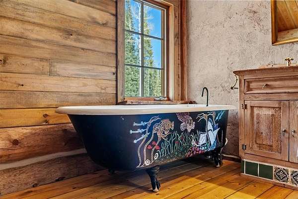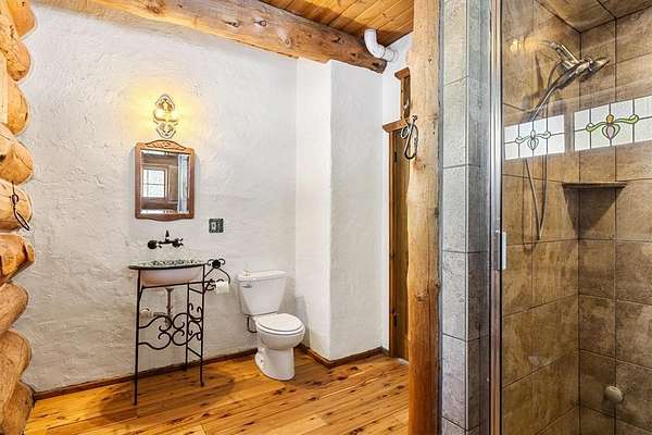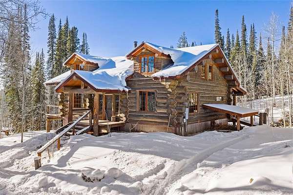 This enchanting Elkhorn retreat offers a rare blend of log craftsmanship, character, and access to the outdoors. Just three minutes from Steamboat Lake and seven minutes from Pearl Lake, the setting places you at the doorstep of Northwest Colorado's most iconic recreation while still feeling entirely removed from the noise of everyday life. Hahn's Peak and endless public lands surround the neighborhood, creating a true basecamp for year-round adventure tucked quietly among towering aspen and pine trees. Thoughtfully built by Thomas Wood, the residence showcases authentic log-built charm and artistry throughout. Warm wood tones, hand-carved details, and custom built-ins create an inviting atmosphere that feels both timeless and personal. A wood-burning fireplace anchors the living space, offering a cozy place to gather after long days outdoors. Inside, distinctive features include unique mosaic tile designs, an antique stove, a classic claw-foot bathtub, and beautifully crafted shelving. The main level is filled with natural light as panoramic windows frame peaceful forest views in every direction. Each of the three spacious bedrooms offers comfort and privacy, while large living areas on every level provide flexibility for relaxing, entertaining, or hosting guests. On the lower level, a generous shop space is ready to house tools, toys, and hunting gear, with plenty of room to tinker and work through the winter months. Whether you choose to bring the outdoors in or head out to explore, this location delivers unmatched access to skiing, snowshoeing, snowmobiling, biking, hiking, fishing, boating, and water skiing, all just moments away. This is more than a home. It is a place to slow down, reconnect with nature, and create lasting mountain memories in one of Steamboat's most inspiring settings.