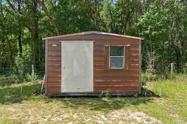 Beautiful RARE TO FIND! PRICE DROP! This 4-bedroom, 3 full bath home sits on nearly 9 acres, partially fenced, with a pool (NEW LINER and new High efficiency pool pump), NEW ROOF, Solar Power (NO POWER BILL!!!) and POND! If you are looking for the country feel (complete with deer and other wildlife) but still want to be within minutes of stores, restaurants and a hospital, then this property is for you! New ceramic tile, Hard wood floors-looking throughout entire house and fresh paint. The kitchen is equipped with stainless steel appliances. There is a breakfast bar, breakfast nook and a formal dining room with high ceilings and chandelier. Large master bedroom has a separate entrance to the inground pool. There is also a covered porch area to sit and relax after your swim. There are also 2 other doors that lead out to the pool on the other side of the home. The master bath has a large garden tub and separate shower with dual separate shower heads. The 3 additional bedrooms are located on the other side of the home along with 2 full bathrooms, one of which is a Jack and Jill. Very large concrete pad area for additional parking along with the 2-car side entry garage with large above garage attic space with flooring. Several beautiful large oaks, garden areas, many fruit trees including blueberry, peach, pear, apple, elderberry, beautyberry, passionfruit, moringa, banana, peppers and more. For the handyman, there is also a 24 x 12 workshop WITH electricity. Large Fire pit with concrete pad. Chicken coops included. Even has a shooting range area. The home has a whole-house water treatment system. On top of all that, there is a WHOLE HOUSE GENERATOR! Call today for your private showing!