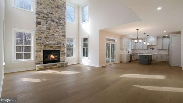 M Gold Building Group presents quality New Construction, Just completed Ready to move in!. A custom 5600 sq ft 4 BR, 3.5 BA home on a gorgeous 1.6-acre lot. This is a must-see home with luxury details and thoughtful touches added throughout including 2x6 exterior walls, Viwinco series black windows, James Hardie plank siding, partial stone front, wide plank hardwood floors throughout the entire house, custom crown molding, ceiling fans, luxury baths with Century cabinetry & custom lighting including 100+ recessed lights throughout. A large, open 2-story foyer with staircase overlooks a 2-story Family room with floor to ceiling stone gas fireplace . Formal LR & DR with tray ceiling & wainscoting. Gourmet Kitchen with custom cabinetry by Century Kitchens and Quartz counter tops, high-end stainless steel appliances. Mudroom off kitchen with built-in bench & custom shelving with access to 2+ car attached garage with insulated garage doors. 24x24 covered patio off kitchen with full floor to ceiling wood burning stone fireplace. Hall off of Family room leads to large 1st floor Study & Powder room. Den with double glass doors. Oak stairs with poplar risers and painted balusters lead to the 2nd-floor landing with hardwood floors that overlooks the Family room below. Primary Bedroom Suite with double door, tray ceiling, large walk-in closet & luxury bath with seamless glass shower enclosure with dual heads, double vanity & free standing luxury bath. 3 additional large bedrooms all offer walk-in closets. Jack & Jill bathroom between 2nd & 3rd Bedroom, Full Hall bath with double vanity & tub/shower. Convenient 2nd floor Laundry room with large closet & attached Utility room. Full, walk-up finished Basement with 9' ceilings & bonus room with full bath. 2 -zoned central air & gas heat. Poured concrete foundation. Full glass front &side doors. Every room is wired for cable. Don't miss this beautiful custom home!