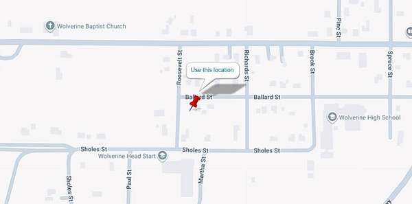 Old 27 N to S Straits Hwy, Left onto Shire Rd, Right onto Wolverine Rd, Right onto Roosevelt, Left onto Ballard St.