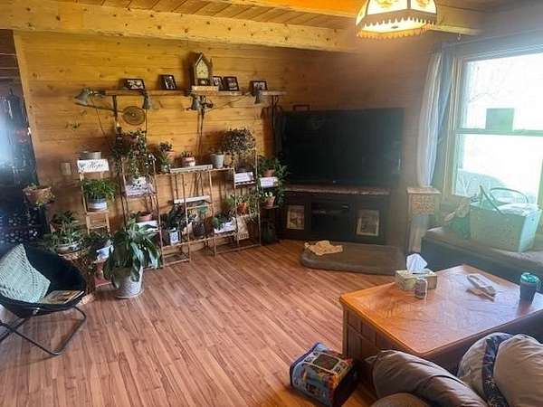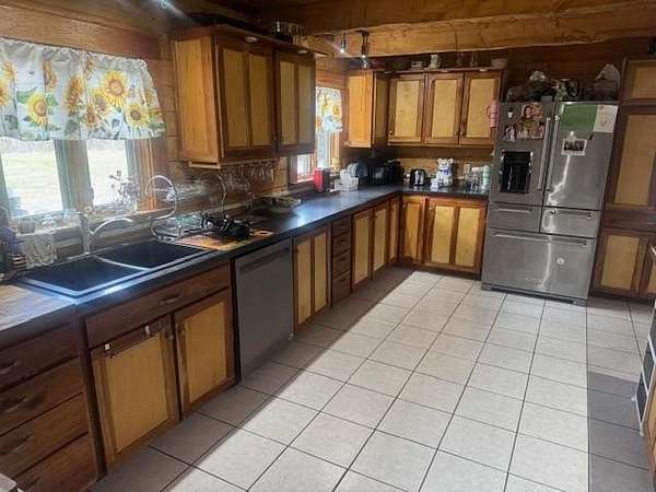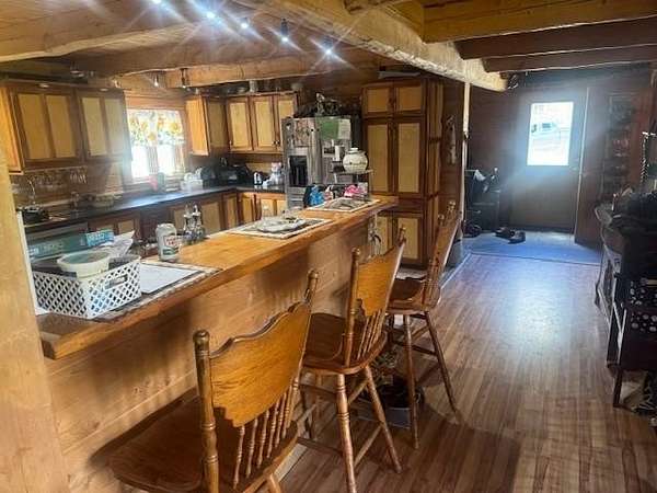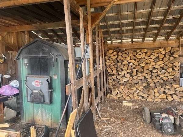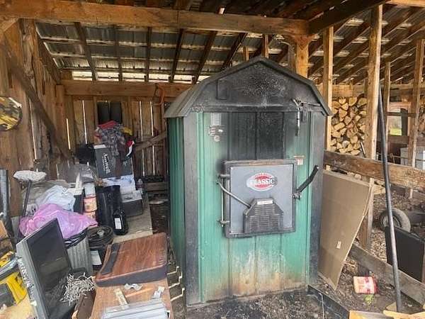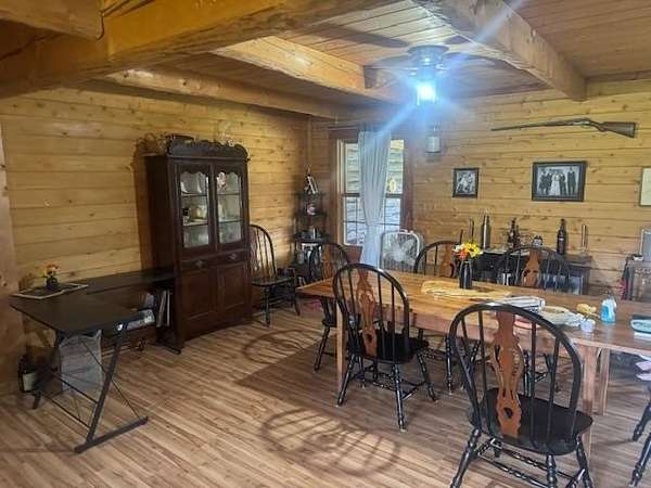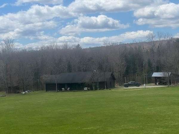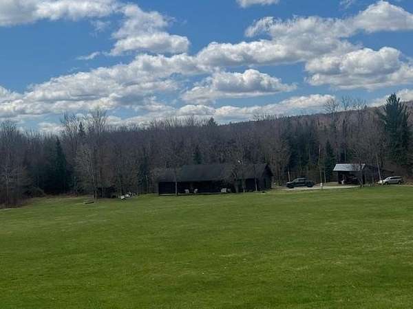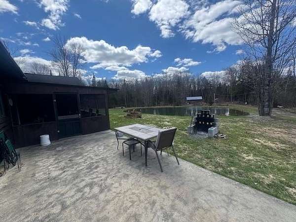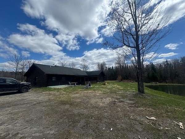 Well maintained 3 bedroom, 3 bath single story log home with radiant heat on 7 acres with 4 bay 20x40 open front garage, screened in porch overlooking a lovely pond. Includes a shop, maple woods, and approx. 3.5 acres of field. A wonderful place to call home. Enter the home via a vinyl tile floored mud room, a half bath with tile floor to your right with laundry, utility room to your left with gas boiler. Next is a study/office to your left. Then continue into an open concept kitchen/living/dining area. The custom kitchen has cherry and maple cabinets. The cherry came from the property. Counters on 3 sides. 1/2 are butcher block style. Very roomy with lots of workspaces and an eating counter. Spacious living room and dining room all with exposed beam ceilings and slider to screened back porch overlooking the pond. A short hallway leads to 2 bedrooms and a shared full bath, and a primary bedroom with Jack and Jill walk-in closets, spacious 3/4 bath with double sink and tile floor. There is nook that is perfect for a computer desk or your favorite chair to read from. There is a 4 bay open front garage. One bay houses an outdoor boiler. A short road continues past the swimming pond and across a stream to the one bay shop building. Perfect to mechanical or woodworking space. Continue past the shop to a manicured hardwoods that turns to mixed woods at the back. A VAST trail crosses the back of the property. Private, very comfortable, and a quality home. Hard not to like.