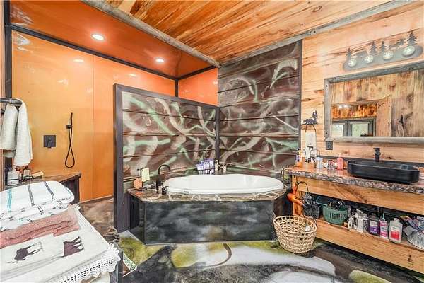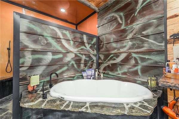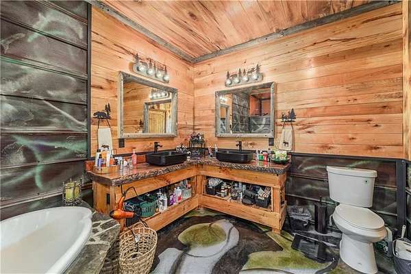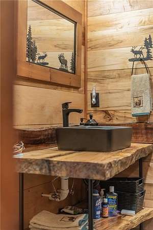 Every detail of this home showcases exceptional craftsmanship. The entire interior features hand-selected, custom-crafted wood, creating a warm and truly distinctive design you will not find just anywhere. The primary suite includes a 6-foot soaking tub, a spacious 5x10 walk-in shower, and maple countertops. The guest bathroom also features a 5x4 walk-in shower with maple countertops.