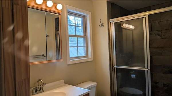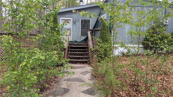 This is an estate sale. This cabin has one large master bedroom with a two sided fireplace into the family room and an attached full bath. There is a large family room with LV floors and the fireplace. The kitchen and dining area are good size. The kitchen is basic but has a newer stainless refrigerator, range and dishwasher. There is a storage room and a second full bath in that area. The home is surrounded with a large deck looking out to the beautiful six acres. On the property there is also a one car garage and a very large work shop with electricity! The laundry room is in a separate building on the side deck but there is room and water supply to move to the large eat in kitchen area. There are some remaining items in the home but will be totally cleared out before the property closes. This is a great opportunity to own land and fix up this cabin to be a great home or second get away HOME! So much potential! A true diamond in the rough.