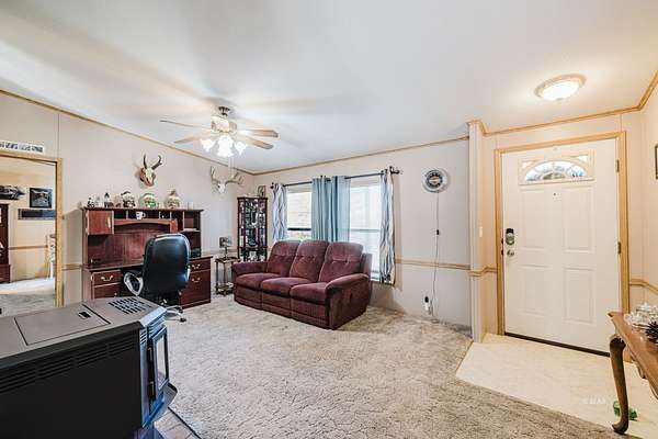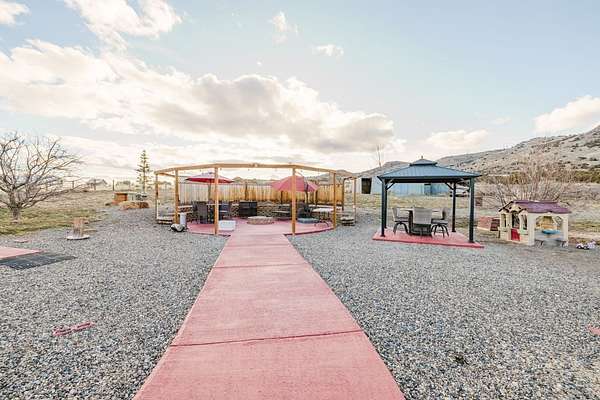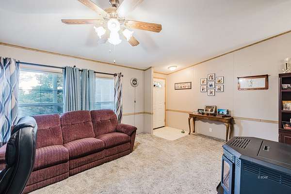 Well-maintained single-family home with 3 bedrooms, 2 baths, and spacious living options. The large living room flows into a generous family room, creating flexible living spaces for entertaining or everyday living. A big kitchen features pantry cabinets and a gas range, plus plenty of cabinet and counter space.Outside, enjoy a sizable 2-car detached garage with 220V power, epoxy floors, and heating for year-round use. The backyard offers a relaxing retreat or lively entertaining space with a gazebo, along with two storage sheds for extra storage needs. The front yard presents a forest-like setting that helps keep the home cooler in the summer. A pellet stove in the living room to help with those cold winters. Solar panel on the backyard entertainment area and one on the garage to help with those electric bills. Don't miss the opportunity to see this home today