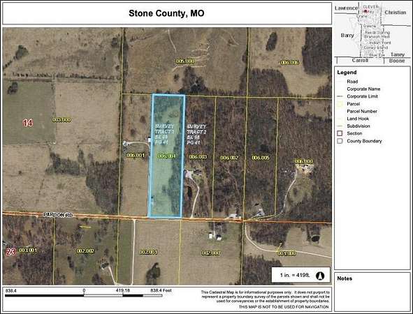 If you are looking for a secluded, private park like parcel of land that has everything needed already to build your dream home or finish out the shop into your barndominium apartment LOOK NO FURTHER! This 10 acre property is gorgeous with just the right mix of trees and open pasture and located on a dead end road in northern Stone County. Property includes a nice 40x30x14 metal shop building built in 2012 that has two 12x12 foot garage doors on the ends as well as a standard walk through door for access. Building has concrete, insulation, is plumbed and has electrical 110/220 and includes a toilet and sink. Ideal for finishing out as a home or for a detached shop/barn to go with your new dream home build. This 10 acres is perimeter fenced and will hold livestock, includes cattle waterers as well as a small pond. All the hard work has been done here & includes a 1000 gallon septic system, a water well, fencing, shop and pond you just need to bring your building plans and this one is ready to go! Buyers must schedule and appointment and have a real estate agent present for all showings.