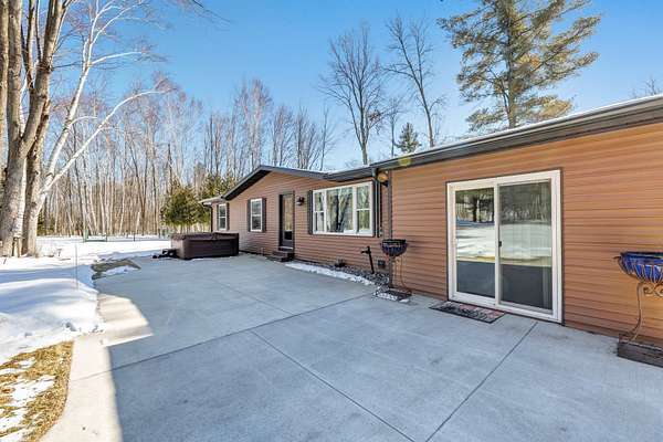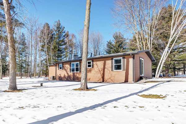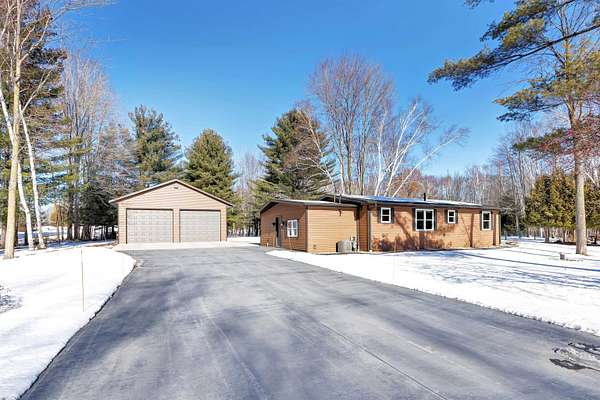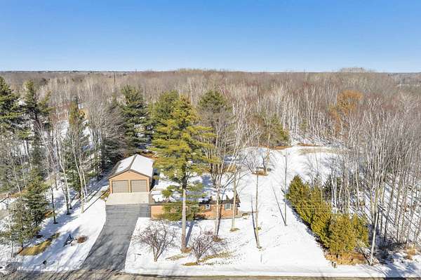 Country paradise in this updated ranch home with newer 30X50 insulated and heated garage with 9 ft overhead doors and private pond. Easy highway access with many updates including roof, aluminum fascia and soffits, flooring, remodeled bathroom w/walk-in shower, triple-pane windows and patio door, siding, patio, kitchen w/walk-in pantry, water heater, central air, water softener, and driveway. New well. Large master bedroom (was 2 bedrooms). Possible 3rd bedroom if needed. FF laundry. The newer 30X50 outbuilding has 200-amp electric service and is finished off meticulously and hooked up for a generator also. Hot tub on priv backyard patio. Priv pond stocked with fish and equipped with an aerator. Hard-to-find country property with no restrictions!