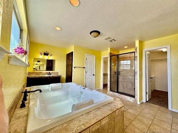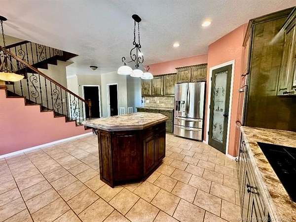 Inside, you'll find a warm and inviting home featuring 4 spacious bedrooms (including a luxurious master suite), 5 bathrooms, a welcoming entry, sitting room, dining room, kitchen, living room, large utility, office, media room, and even a hidden room for added charm. The home is equipped with central heat & AC, a cozy gas-log fireplace, shingle roof, and slab foundation, plus a finished double-car garage and a large covered patio perfect for entertaining or enjoying quiet evenings outdoors.