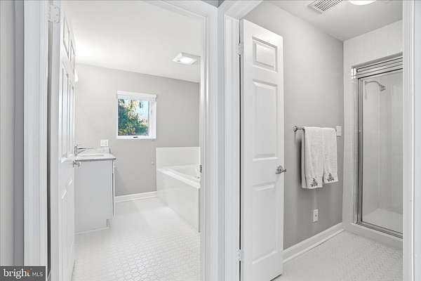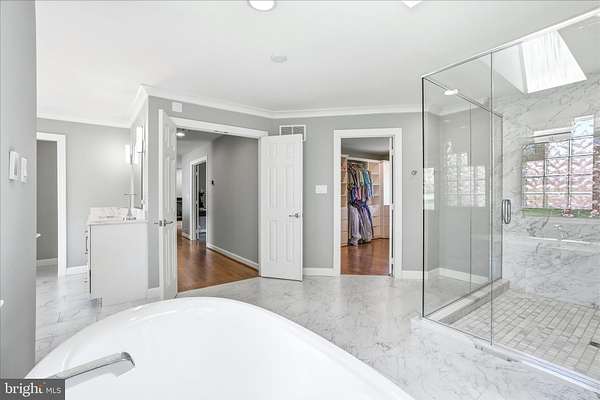 Experience the pinnacle of luxury living in this extraordinary custom brick contemporary home, offering nearly 8,500 square feet of finished space on a breathtaking 2.22 acre lot. Nestled within the coveted White Flint Springs community, this property offers an exceptional blend of privacy, prestige, and natural beauty. Surrounded by mature and flowering trees with lush, custom landscaping, the setting is complemented by a circular driveway, three-car garage, and exceptional outdoor living spaces including a multi-level deck and slate patio with a custom fire pit - perfect for entertaining. Inside, a stunning marble entryway welcomes you into an elegant yet inviting interior featuring a sunken formal sitting room, an open-concept layout, and a gracious formal dining room adorned with tray ceilings. The main level showcases soaring cathedral ceilings in the family room and gourmet kitchen, where expansive spaces and thoughtful design create the ideal setting for both daily living and hosting. A tiled all-season room, bathed in natural light, opens seamlessly to the deck and expansive backyard oasis. Designed for ultimate convenience, the main level offers true one-level living with two additional bedrooms, each with its own private full bath, as well as two half baths for guests. A spacious laundry room with brand new washer and dryer adds everyday ease. The luxurious primary suite is a private retreat, complete with a large sitting area, separate sleeping quarters, a custom walk-in closet, and private balcony access. The spa-inspired bath features heated floors, marble finishes, dual vanities, a soaking tub, and a large glass-enclosed shower. The walk-out lower level is truly a home of its own, offering incredible flexibility with three separate access points from the main level. Highlights include a full in-law or au pair suite with a large bedroom, full bath, and full kitchen with stainless steel appliances. Additional spaces include a sprawling family room and exercise area, another generously sized bedroom with a full bath, a sauna, steam shower, cedar closet, and abundant storage throughout. Step outside to the beautifully designed slate patio with built-in seating and fire pit for year-round enjoyment. This meticulously maintained home features numerous recent upgrades, including dual HVAC systems, newer hot water heaters, a newer well pump, and a water filtration system - all routinely serviced for peace of mind. With four gas fireplaces adding warmth and sophistication throughout, this one-of-a-kind residence perfectly blends timeless elegance with modern comfort in one of Frederick's most desirable communities.