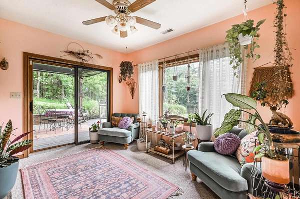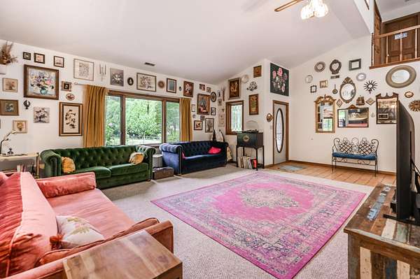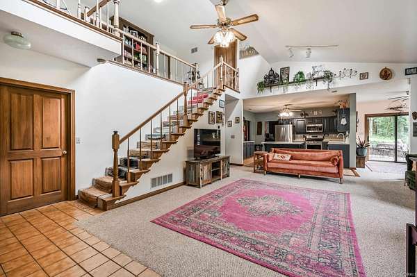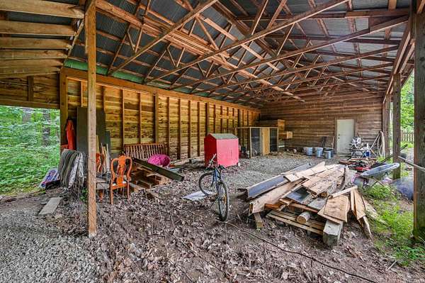 Your Dream Home Awaits on 15+ Acres of Brown County Bliss. Tucked away on a peaceful dead-end road in northern Brown County, this stunning property offers the ultimate retreat. Step inside this custom-built, nearly 2,000 sq ft home and be greeted by an impressive open-concept living space with soaring cathedral ceilings. The home's design focuses on bringing the outdoors in, with every window offering a picturesque view of your private 3/4 acre stocked pond. The main floor features a massive master suite, providing a luxurious sanctuary to unwind. The kitchen is a chef's delight, with newer stainless steel appliances. Outside, the possibilities are endless. The 15+ acres of wooded land are a nature lover's paradise, complete with a playful creek and an abundance of wildlife. Fenced backyard. Pear, Peach and Apple trees! The covered patio is an idyllic spot to relax and watch the sunrise over the water. For the hobbyist or craftsman, an 18'x24' finished and heated workshop with an overhead door is attached to a generous 47'x24' three-sided pole barn, offering plenty of room for projects and equipment. This rare gem combines seclusion with accessibility. You're just a 12-minute drive from the vibrant town of Nashville, home to charming shops, eateries, the Music Center, and Brown County State Park. High-speed fiber internet ensures you stay connected while enjoying the tranquility of country living.