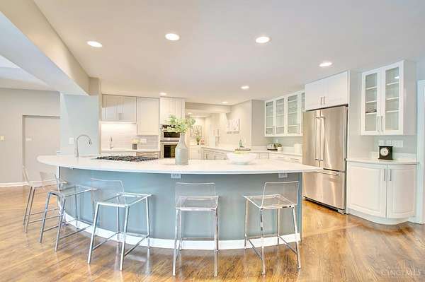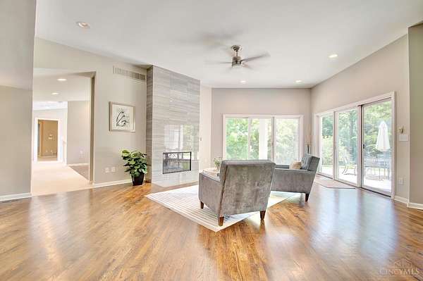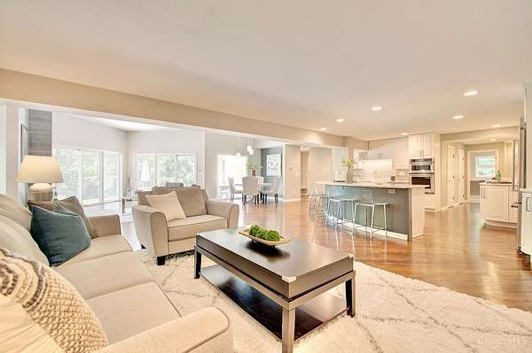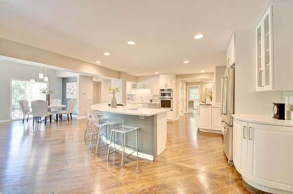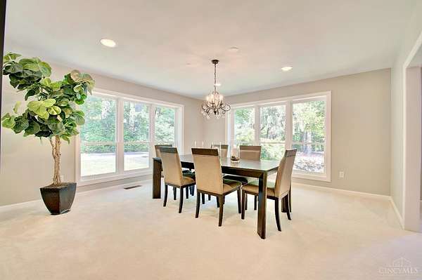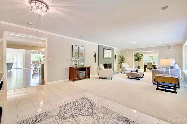 Sprawling 8200 sqft ranch nestled on 3 acres in prestigious Indian Hill. This beautifully designed home is where modern elegance meets everyday comfort. With Seven bdrms, 6.5 baths, 2 kitchens, and 2 laundry rooms, there's room for everyone to live, relax, and entertain in style. Clean lines and a sleek, contemporary feel flow throughout, complemented by warm touches like 5 gas fireplaces including a stunning dual-sided FP and a classic wood-burning fireplace. The spacious open kitchen is flooded with daylight from the wall of windows with a hearth room that invites gathering. The primary suite is a serene retreat with a luxurious bath, dressing room, huge WIC. All new Pella windows bring in natural light and energy efficiency. Added perks include surround sound, 3 HVACs, 2 attic fans, new circular driveway. The covered patio and flat private rear yard has endless potential. This is a rare opportunity in one of Ohio's most desired neighborhoods.