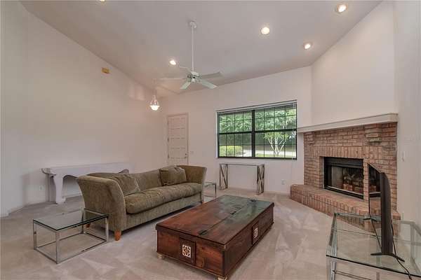 Homes at this price point are a rare find in Summit II, making this an exceptional opportunity to enjoy the privacy, space, and convenience this community is known for! Tucked within the peaceful, gated community of Summit II, this inviting residence overlooks 3.7 acres of private, park-like grounds. A separate entrance enhances the sense of privacy, while the setting offers a tranquil backdrop for everyday living. The 2-bedroom, 2.5-bath home is filled with natural light and soaring cathedral ceilings, creating a warm and spacious atmosphere. A flexible office/bonus room provides additional functionality, perfect for work or hobbies. The living room centers around a cozy brick fireplace and flows seamlessly into the kitchen, ideal for entertaining or easy everyday conversation. The kitchen is thoughtfully designed with abundant cabinet and counter space, a center island, and matching appliances. Both bedrooms are generously sized, but the primary suite is a true retreat with its walk-in closet and private en-suite bath featuring a glass-enclosed shower and extended counter space. Additional highlights include a large 2-car garage, indoor laundry room, and plenty of room to enjoy the property's expansive acreage. The quiet community setting is balanced by its convenient location, with shopping, dining, medical facilities, and entertainment just minutes away. This Summit II home offers the perfect blend of comfort, privacy, and accessibility--all within one of Central Florida's most desirable gated communities.
