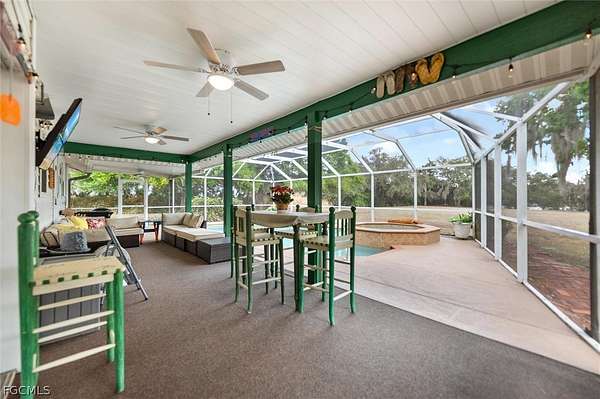 Sitting on just under two acres at the end of a quiet street inside the private Hidden Hammock community, this 5-bedroom, 3-bath riverfront retreat offers the kind of privacy that's getting harder to find... no neighbors to the left, just open space and total seclusion. Positioned on the historic Caloosahatchee River where the water gently curves, the property enjoys naturally calmer, wide, navigable water ideal for boating, skiing, fishing, kayaking, and fully embracing the Florida lifestyle right from your backyard. Located east of the locks, it also provides added protection and peace of mind with reduced concern about water intrusion.... Inside, just under 2,400 square feet of living space feels even larger, with a sunken living area serving as the heart of the home and thoughtful separation perfect for family living. River views from the kitchen, family room, and multiple bedrooms are what truly set this home apart. The updated kitchen features quartz countertops, upgraded lighting, and seamless access to the pool and outdoor living area, making it ideal for hosting holidays, family dinners, or your next riverfront gathering. Pocket sliders open wide to blend indoor and outdoor living effortlessly. Outside, enjoy a heated pool, expansive lawn, and a private dock (2023), with plenty of space to entertain, relax, and breathe on nearly two acres of waterfront property. Major updates include a 2023 roof, 2023 dock, 2023 water system, full home PEX plumbing repipe, HVAC approximately eight years old, and a 26 kW Generac whole-home generator installed in October 2025 with an approximately 300-gallon tank, designed to power the entire home for uninterrupted comfort and security. This is more than a home, it's a private Florida riverfront retreat built for living well.
