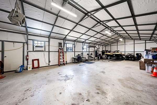 Seller offering 10k flooring concession! Situated on 4.48 cleared acres in Nevada, TX, this 4-bedroom, 3 full-bath doublewide offers a single-story layout with flexible living space and multiple outbuildings. The home includes two living areas, a dining area, and an office located off the primary bedroom. The kitchen features an island, breakfast bar, built-in cabinetry, dual sinks, pantry, and eat-in dining. The primary bedroom includes an ensuite bath with dual vanities, a garden tub, separate shower, and walk-in closet. Secondary bedrooms are spacious, with select rooms offering walk-in closets. A wood-burning fireplace is located in the main living area. Recent updates include a full roof replacement (June 2024), newly installed front and back decks (June 2024), a professionally installed water heater (April 2023), and a 5-ton 16 SEER HVAC system with inside and outside units. The property includes a 50x30 insulated metal garage with heat, AC, and an oversized roll-up door, along with a 14x40 storage building, 12x8 storage barn, shed, detached 2-car carport, and additional storage structures. Ample space for RV, boat, or equipment parking. Schedule a showing today!