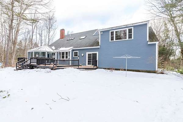 Privately set back on a 2.04-acre lot at the end of a dead-end street, this beautifully maintained 3-bedroom Colonial offers space, comfort, and flexibility in desirable Bow, NH. A tiled breezeway connects the home to the 2-car garage and leads to the back deck and yard. The tiled kitchen features granite countertops, center island, breakfast nook, walk-in pantry, and flows into the adjoining family room with a wood-burning stove and access to a 3-season solarium plus a new extended deck?perfect for relaxing or entertaining. A butler's pantry connects the kitchen to the dining room with hardwood floors, while an additional family/living room offers a wood-burning fireplace. Upstairs you'll find a spacious primary suite with walk-in closet and 3/4 bath, plus two large bedrooms and an updated full bath. Additional features include unfinished attic space above the garage (ideal for storage or future expansion), a large unfinished basement, central A/C, wiring for a hot tub and portable generator. Bow is known for its strong sense of community, highly regarded schools, and easy access to Concord, Manchester, and major commuting routes.