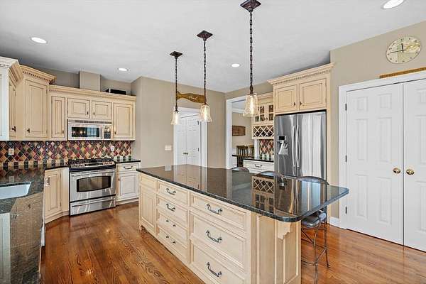 Looking for your forever home? You've found it! A spacious, luxurious retreat, this house is nestled in the privacy of a cul-de-sac, offering 4,600 square feet of sophisticated living space. The two-story foyer sets an elegant tone, leading to formal living & dining rooms adorned with intricate moldings & high ceilings that enhance the sense of openness. The heart of the home is a Country French style island kitchen, perfect for culinary enthusiasts. The expansive primary suite is a private oasis, featuring a sitting area, dual walk-in closets, & a skylit full bath. The finished walkout basement elevates the home's appeal with a versatile media room, a beautiful kitchen/bar made from African ribbon mahogany with a granite countertop, a dedicated exercise room, & a rejuvenating sauna bath, ideal for relaxation or hosting guests. A 3-car garage provides generous space for vehicles, making this residence a blend of elegance, functionality, & secluded comfort.