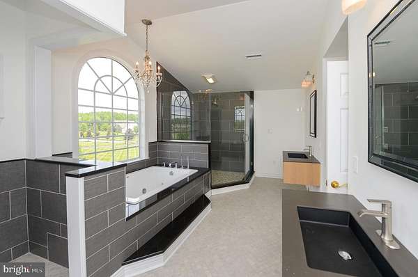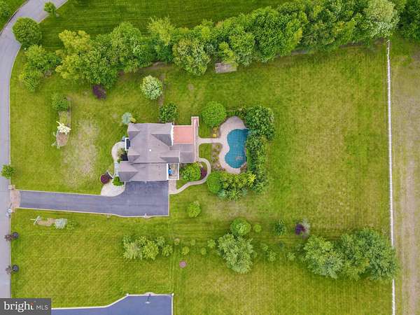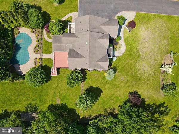 Superb executive home located on 2 acres on a cul de sac. Renovated and in move in condition. Beautiful slate walkway from driveway to entrance with covered porch Entrance features glass front door with satellites. Features include hardwood floors throughout 1st and 2nd floors. LVP in basement. No carpeting. New interior painting throughout in neutral tones. 2 story foyer with chandelier. Chandeliers throughout 1st floor. Remodeled bathrooms and vanities. Custom kitchen cabinets with granite tops. Center island. 2 story family room with chandelier and gas fireplace with stone surround. Walk out from sunroom to enormous, covered deck (25' x 22' & 27' x 23') with staircase to patio and pool area below. 2 staircases rise to 2nd floor. All 4 bedrooms have ceiling fans. Large en suite main bedroom with tray ceiling, sitting room, 2 closets. Large main bathroom with separate glass shower and soaking tub with 2 vanities. 2 jack and jil bedrooms. 4th bedroom with its own bathroom. Large, finished basement with 3 built in desks with extensive cabinetry. Full bathroom. Wet bar. Walkout to the rear paver patio (44' x 28') covered by the enormous deck. In ground heated gunite swimming pool. 3 car attached garage. 1st floor laundry with sink & cabinets. Many extras - butler pantry, mudroom, extensive recessed lighting, continuous flow water heater, extensive molding & shadow boxes. Owner is NJ licensed real estate agent. All for you, the next owner.