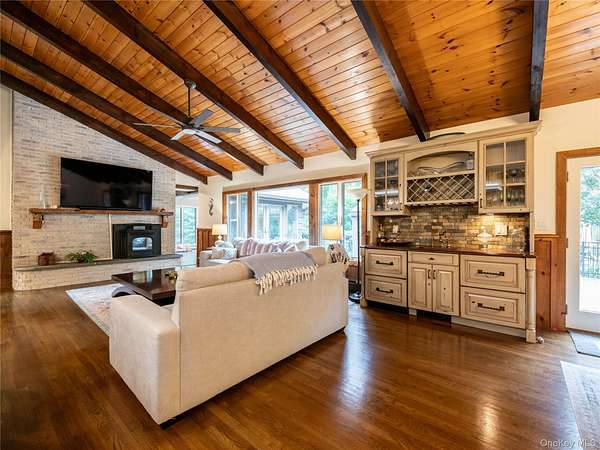 Spacious 6-Bedroom, 4.5-Bath Farm Ranch on Over 2 Acres Experience luxury living in this expansive Farm Ranch, perfectly situated on more than two private acres. The open-concept floor plan showcases a beautifully designed chef's eat-in kitchen with custom cabinetry and high-end finishes, flowing seamlessly into a magnificent great room featuring vaulted ceilings and a wood-burning fireplace. This home offers six generously sized bedrooms, including a convenient main-floor laundry room and multiple spaces for relaxation and entertainment. Elegant hardwood floors and thoughtful custom touches enhance the home's classic, timeless design. The lower level provides an exceptional entertainment area, gym, large workshop, storage, and a guest suite. Enjoy resort-style amenities including an in-ground saltwater pool, fire pit, koi pond, private children's playground, and a full-house Sonos sound system. The property also includes a 2-car attached garage, auxiliary driveway, full-house generator, in-ground sprinklers, and a comprehensive security system. Recent Upgrades include: New pool liner, skimmer box, heater ignition, and water control valve, New HVAC system upstairs and new boiler, old oil tank removed; two new 275-gallon tanks installed in the basement, koi pond skimmer box, underground piping, and net. Kitchen updates: new refrigerator and rebuilt oven Located within the Harborfields School District - Washington Drive Primary, Oldfield Middle School, and Harborfields High School - this property offers the perfect blend of elegance, comfort, and modern convenience.