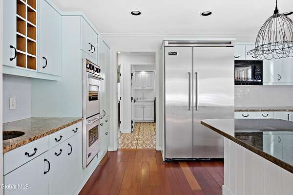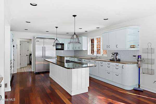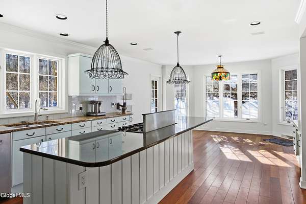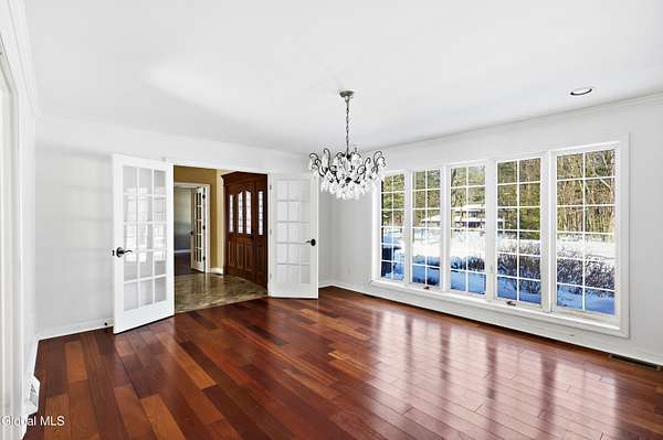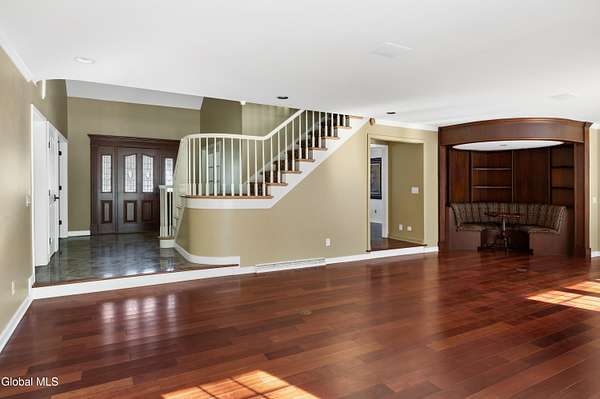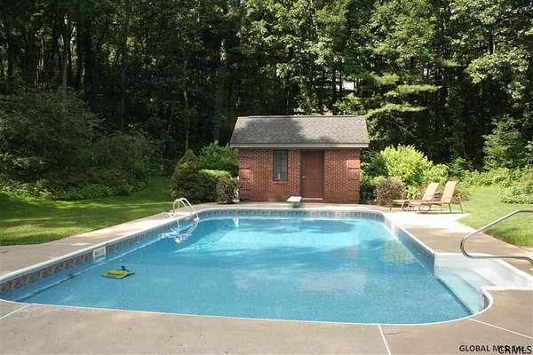 Spectacular custom brick home on 2+ private acres in prestigious Meadowbrook Estates. Located just 5 minutes from Saratoga Lake and the historic racetrack, this home blends luxury, privacy, and convenience. Designed for entertaining, it features a 2-story foyer, grand living room with built-ins for game night, a huge dining room, an office with its own fireplace, and an expansive chef's kitchen overlooking a backyard oasis surrounded by perennials and mature trees. The spacious first-floor master suite offers comfort and privacy creating a serene retreat within this exceptional 5-bedroom residence. The bluestone patio, sparkling in-ground pool, and charming brick pool house combine to create an exceptional outdoor setting for unforgettable summer entertaining. The finished lower level adds incredible versatility and a flex space for a dedicated fitness area, hobby room, or a generous billiards area. Hardwood floors, custom ceramic tile and granite are found throughout the home. A rare opportunity to own a distinguished estate in one of Saratoga Springs' most sought-after neighborhoods.