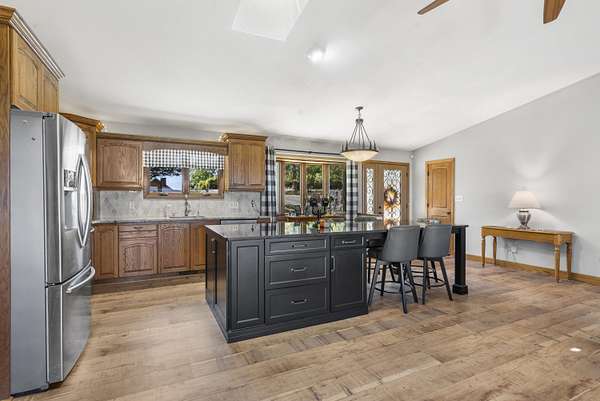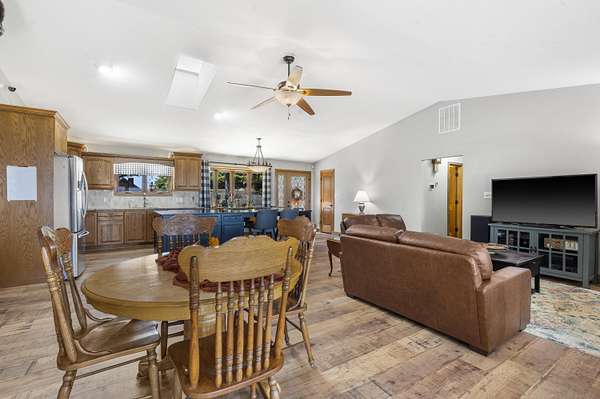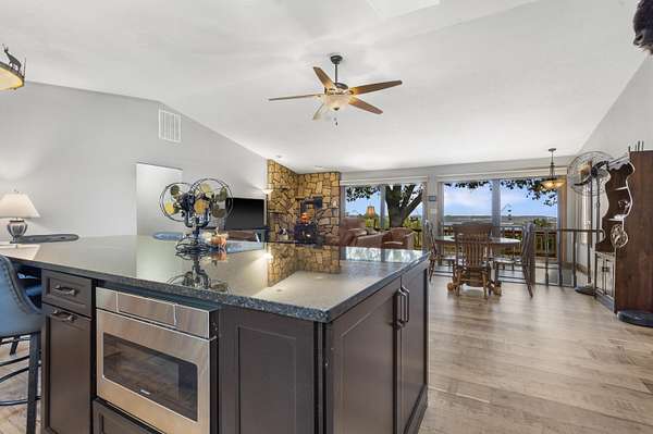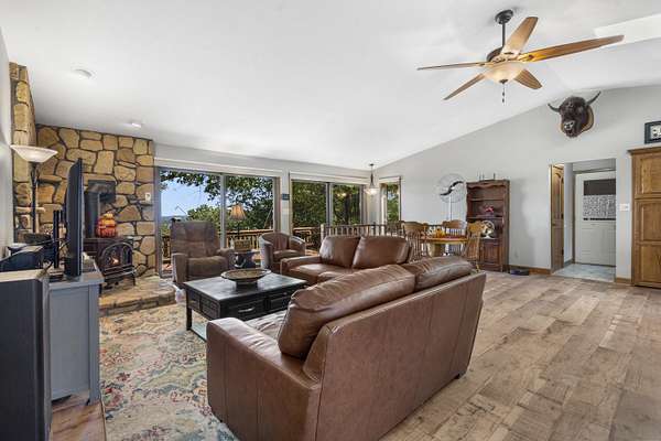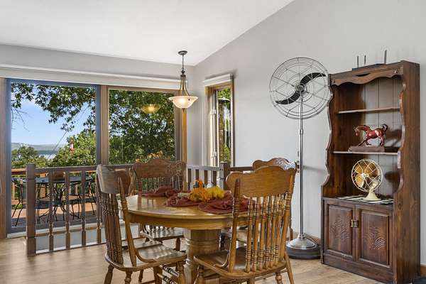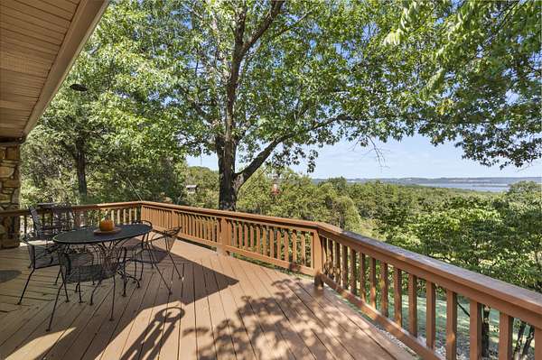 Table Rock Lake home located on DD Hwy! Spectacular views of the large part of the lake and some views even capture the lovely Chateau on the Lake. Home is well kept and move-in ready. 4 BR and 3 Bath with open floor plan. 2 Master Bedrooms, one on main level with extra large closet and second one on lower level. New kitchen island contains microwave in sliding drawer. New luxury vinyl floor in Kitchen/Living/Dining room. New front windows. Roof is 3 years old. John Deer Room lower level. Breezeway/Screened-in porch. The home has 2 attached oversized garages. One for automobiles and one for your boat and lake toys or possibly a game room for your teens. Large 3.6 ac lot with an asphalt half circle drive way. This is a great rural location with an even greater lake view and some days you can hear the Silver Dollar City train whistle.
