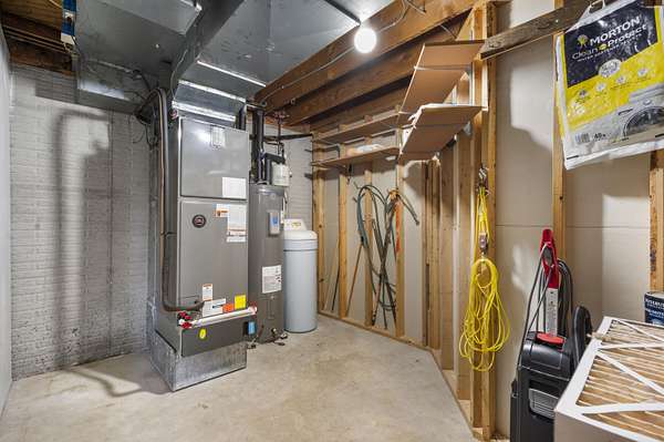 - Dishwasher, Disposal, Dryer, Electric Water Heater, Exhaust Fan, Free-Standing Electric Oven, Microwave, Refrigerator, Washer, Water Softener Owned