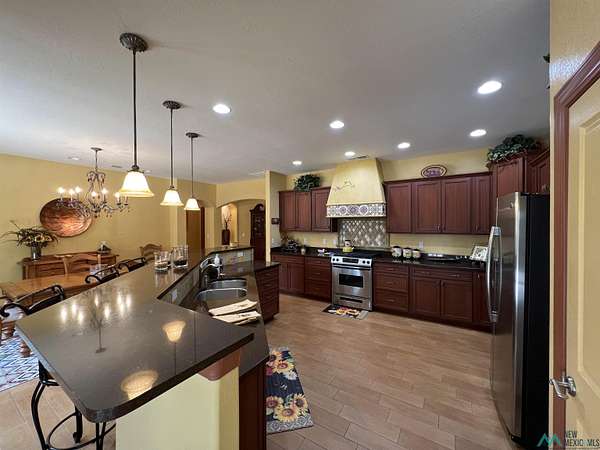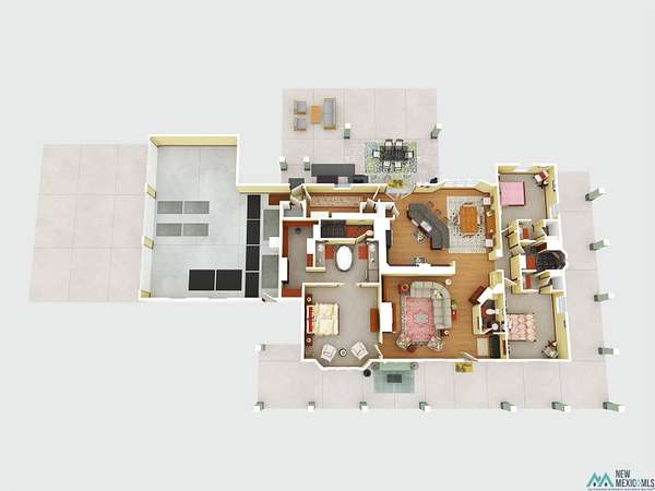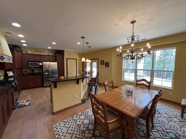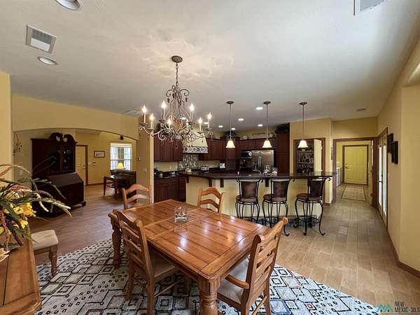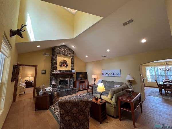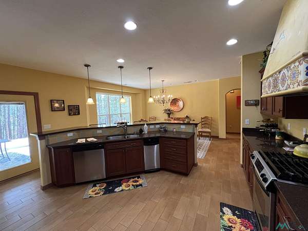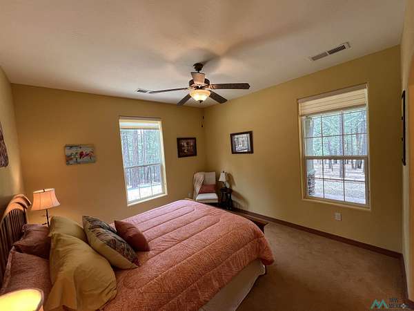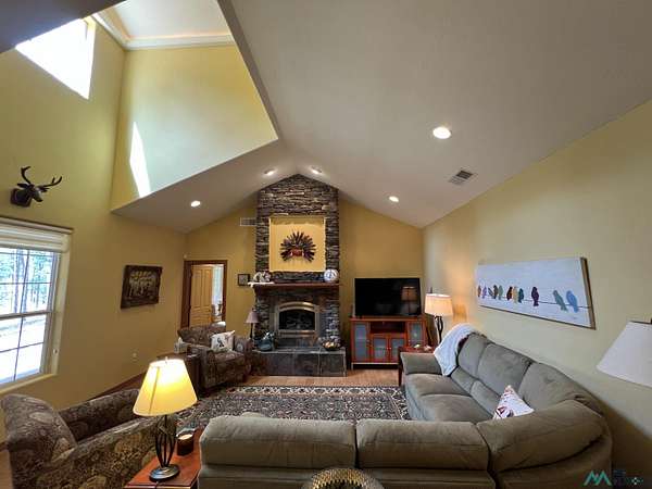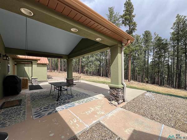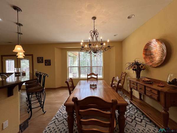 Exceptional custom-built 2187 sq. ft. 3BR/2.5BA mountain home reflecting meticulous care and pride of ownership. This beautifully maintained home at 6 Calle Retiro is ideally located within the serene Pendaries Village Resort on 2.6 acres of peaceful, pine-covered land offering privacy, views, and a true sense of retreat. A welcoming wraparound covered front porch invites you to slow down, take in the surroundings, and step inside where the entry opens to a light-filled great room with vaulted ceilings, expansive windows, and a striking stone fireplace creating a warm yet refined gathering space. The open-concept design flows seamlessly into the dining area and well-appointed kitchen, featuring Corian Quartz countertops, upgraded appliances, and quality tile flooringperfect for both everyday living and entertaining. The thoughtfully designed layout offers privacy and comfort, with the spacious primary suite serving as a true retreatcomplete with a custom walk-in closet and a luxurious ensuite bath with soaking tub and walk-in shower. Two additional guest bedrooms are connected by a convenient Jack-and-Jill bath, providing flexibility for family and visitors. Offered fully furnished and move-in ready. Extending the living area beyond the kitchen and dining area is a large covered patio, ideal for grilling, relaxing, and enjoying views in every season. Function meets convenience with an attached three-car garage offering ample space for parking and includes cabinetry and tool hanging storage. Practical upgrades include a full-house generator, tankless water heater, whole house water filtration system, and air conditioning. New roof and restuccoed in recent years. Enjoy the perfect balance of seclusion and accessibilityjust 25 minutes to Las Vegas for shopping and services, and approximately 90 minutes to Santa Fe or Taos. Whether you're seeking a full-time residence or a mountain getaway, this home invites you to relax, take in the views, and experience mountain living at its finest.