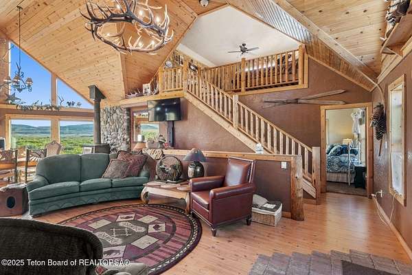 Standing on 9.14 acres with panoramic Wind River Mountain views, this custom home offers rustic comfort with spacious accommodations that have served it well as a family retreat and short-term rental. With 3 levels of living, including a separate downstairs apartment, this property features vaulted ceilings, floor-to-ceiling windows, radiant in-floor heat, Blaze King wood stove, engineered flooring, and a loft with views that stretch for miles. Step onto the expansive wrap-around porch or gather around the firepit and watch wildlife roam by-elk, moose, and deer are regular visitors. A firepit and front yard entertaining area add outdoor appeal, and the 80-gallon high-efficiency water heater, updated blinds, and new radiant heat make this home function as beautifully as it looks. Outdoor enthusiasts will love the proximity to the Bridger-Teton National Forest, and the adventure begins literally as you walk off the doorstep. Nearby opportunities include the Green River (known for excellent fishing), hunting, iconic mountain views, off-road trails, snowmobiling, ice fishing on Green River Lakes, and endless options for backpacking and camping. White Pine Ski Resort is also a short distance away near Pinedale and offers Alpine and Nordic skiing. This is a rare opportunity to own a home where the wilderness is not just nearbyit's part of your daily life.