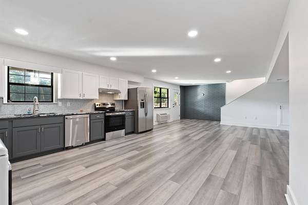 This newly renovated home is in pristine condition and loaded with quality craftsmanship and immaculate design. The property is almost 4 acres and comes with a barn, pond, and pasture for horse owners. It boasts a large L-shaped saltwater pool and the back porch extends the width of the home perfect for entertaining. The upper level has its own separate entry and showcases a large open concept living/dining/kitchen with an island covered in custom tortoise shell granite. The lower level of the house is also an open concept with a large living/dining/kitchen area. The oversized enclosed garage allows for parking multiple vehicles and room for workspaces. The detatched barn added in 2020 has ample space for storage and room for RV parking all enclosed. This incredible homestead is ideal for families in need of in-law quarters who need a separate living space. Each floor is fully equipped with its own full kitchen and laundry areas. This home is the best of both worlds offering private country living with Conway Corp utilities while affording easy access to the interstate and city amenities!