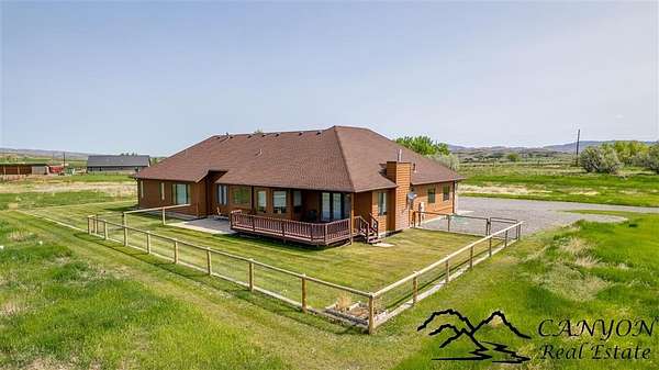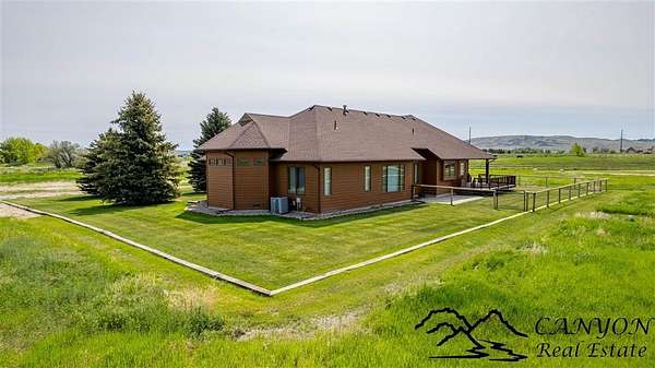 Custom built home on 6.12 acres in a high demand area, minutes from downtown Cody and Yellowstone Regional Airport. This 2,433 square foot ranch style home offers a gorgeous great room with vaulted tongue and groove ceilings, a gas fireplace with rock accents, hardwood floors, numerous windows capturing the mountain views and natural light. The spacious kitchen offers custom cabinets, hard wood floors, an island with bar top seating, breakfast nook, a formal dining area with easy access to the back yard covered deck. Also included is a separate private sunken living room, an office room, laundry room, 2 guest bedrooms and 1 full guest bathroom. The oversized master bedroom and bathroom offer double vanities, walk-in shower, soaking tub and a walk-in closet. The 3 car attached garage is finished and heated. As an additional bonus you will love the heated detached garage with space for a hobby room. Exterior features include a back yard covered deck with amazing mountain views. The back yard is fenced for pets. Horses are welcome. Utilities in this subdivision include Northwest Rural Water, natural gas, power and Spectrum or TCT for internet services. If you are looking for a primary or seasonal residence you will enjoy the easy access and quality this property offers!