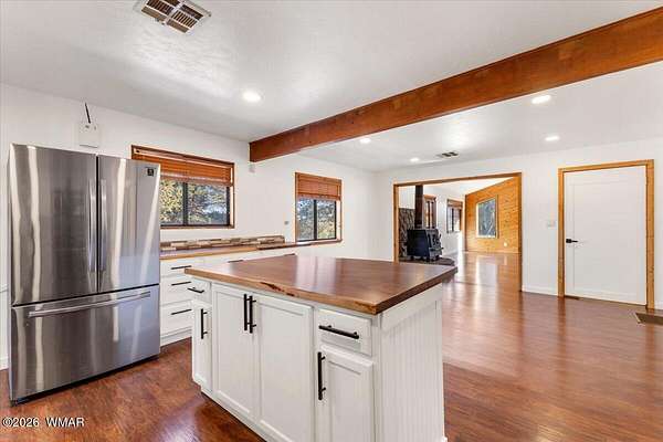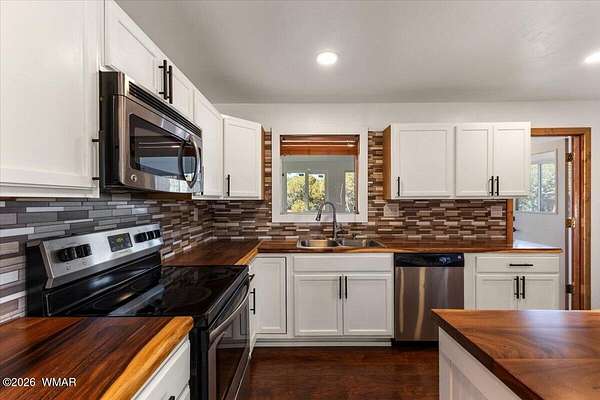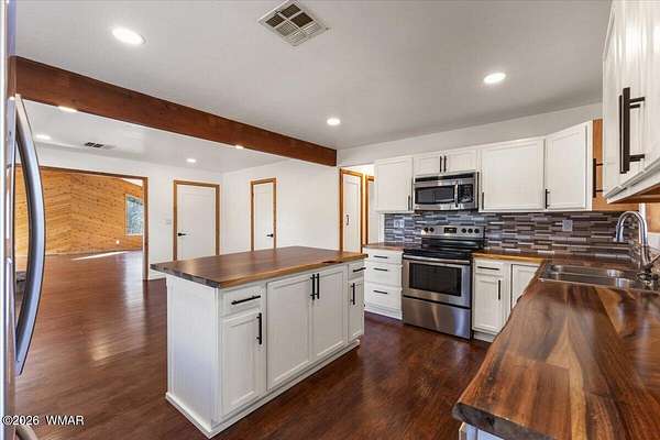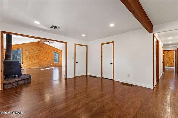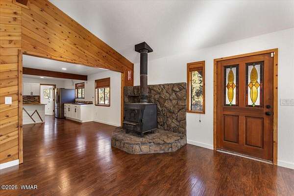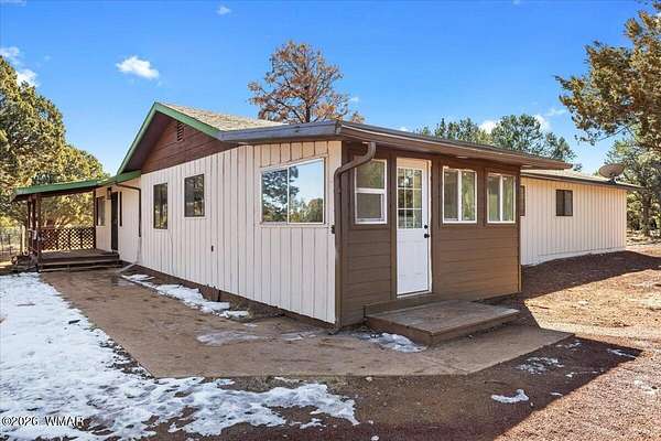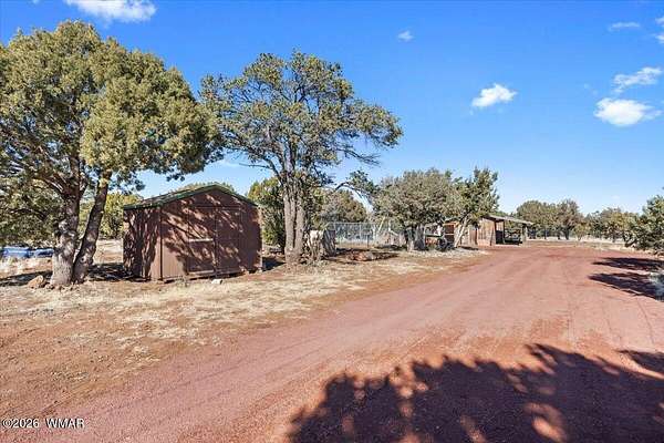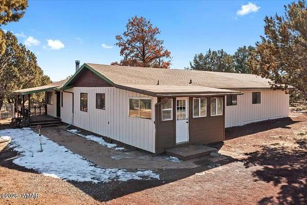 This spacious 3-bedroom home is located among mature cedar trees and offers privacy along with great potential for both indoor and outdoor gatherings. Situated on 3.16 acres at the end of a cul-de-sac, the property features a cindered driveway leading up to the home. Inside, the home offers a large primary bedroom and a spacious living room, both featuring tongue-and-groove herringbone accent walls. Updates include replacement flooring, a kitchen backsplash, updated interior doors, and a laundry room. The property also includes a barn area with horse accommodations, an additional utility building with power, and a separate storage shed. With usable acreage, privacy, and multiple outbuildings, this property offers flexibility for a variety of uses.