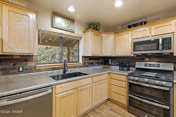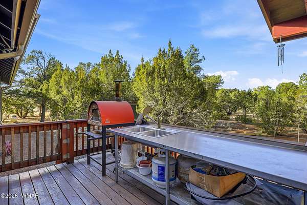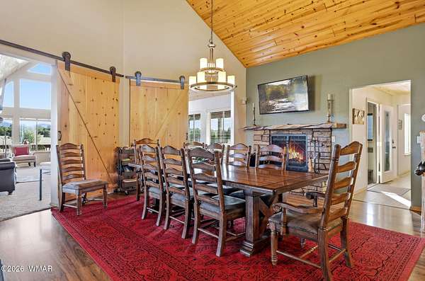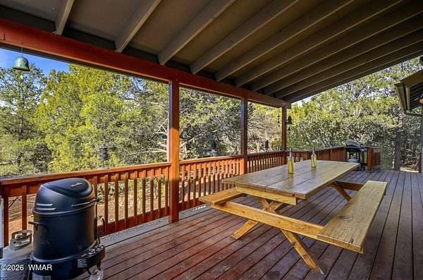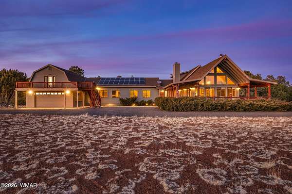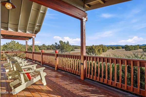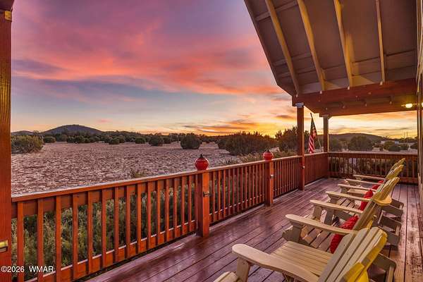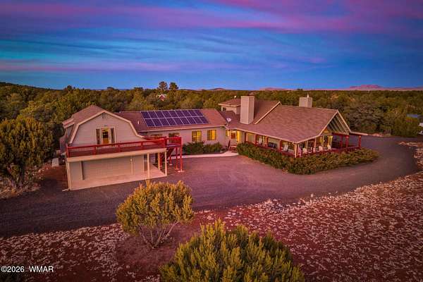 Space, privacy, & breathtaking views-this majestic 8-acre mountain retreat offers the lifestyle people move to the White Mountains for! Escape to your own private mountain retreat with breathtaking panoramic views, all just an easy 20-minute drive from Show Low. This remarkable property offers the perfect balance of privacy, natural beauty, & accessibility. The home is ideally positioned with mature trees behind & alongside, while the open land in front frames sweeping views of the surrounding forest & distant mountains. Outdoor living is a highlight of this property with multiple decks spaces where you can relax, take in the mountain air, watch wildlife, & enjoy the peaceful surroundings. The acreage allows animals, making it a wonderful option for those looking for space for pets, hors or a small ranch lifestyle. With 4,371 sq ft, this spacious cabin-style home provides room for everyone with 5 bedrooms & 4 baths, one being a loft suite with its own bath. The main living area features a wall of windows that fills the home with natural light & captures the incredible views. Vaulted tongue-&-groove ceilings & two wood-burning fireplaces--located in the living room & kitchen--add warmth & mountain charm. The home also features a dedicated office space & a second large living area, perfect for gathering with family & friends. Just off this space is the fifth bedroom & fourth bathroom, creating a private area that works well for guests or extended family. Additional features include an oversized two-car garage, a large storage shed, solar power with electric service, & a whole-home generator that conveys with the property. Many of the furnishings are available separately. With no restrictions, this versatile property offers many possibilities--whether you're looking for a full-time residence, a private mountain getaway, a small ranch property, or even an income-producing retreat. Nearby access to the US Forest Service provides endless opportunities for hiking, horseback riding, & ATV adventures. This is a rare opportunity to own a truly special mountain property where space, views, & tranquility come together.