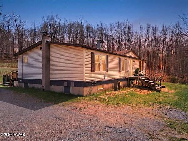 NEAR DUCK HARBOR POND - WHSD - MINUTES TO HONESDALE AND CALLICOON - Tucked away in the desirable Duck Harbor area, this manufactured single-level ranch offers privacy, space, and endless potential. Set on 5 mostly wooded acres, the property provides a peaceful retreat surrounded by nature while still being within reach of nearby amenities.The home features 3 bedrooms and 2 full bathrooms, Living Room with fireplace, all on one convenient level, with a practical layout designed for comfortable everyday living. A full unfinished basement offers ample storage, or the opportunity to create additional living space to suit your needs. Also includes a GENERAC generator.Outdoor enthusiasts will appreciate the close proximity to a recreation lake and the Delaware River, perfect for boating, fishing, and year-round enjoyment. Whether you're seeking a quiet primary residence, a weekend getaway, or an investment opportunity, this property delivers a rare combination of land, location, and potential.Bring your vision and make this serene retreat your own.