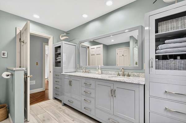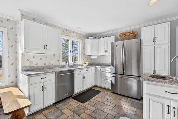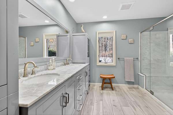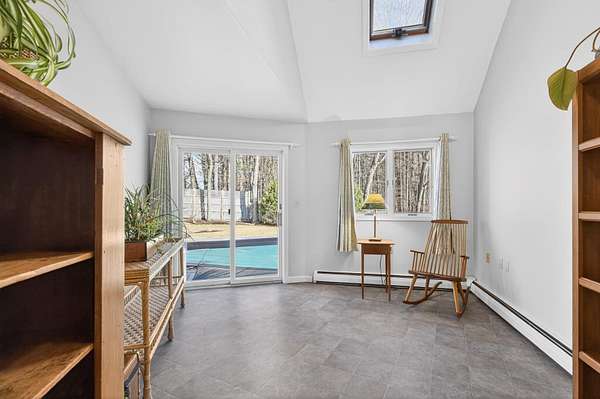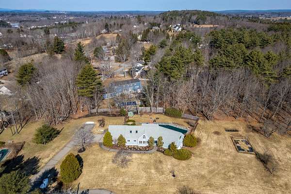 Tucked away on a quiet cul-de-sac and set on 2.18 acres of peaceful, scenic land, this home offers the perfect balance of comfort, functionality, and charm. From the moment you step inside, you're welcomed by cherry hardwood floors, sun-filled spaces, and a warmth that resonates throughout. The thoughtfully designed layout is open yet offers distinct spaces to unwind. The kitchen flows seamlessly into the tiled great room and a sunny dining area, creating an ideal setting for everyday living and gathering. It features stainless steel appliances, including a newer 6-burner Bosch gas range. A cozy breakfast nook filled with natural morning light offers a comfortable start to the day. French doors lead to a deck, bluestone patio, and a beautiful in-ground pool--perfect for relaxing or entertaining. A sunken living room with fireplace adds a cozy retreat. The first-floor primary suite features a walk-in cedar closet and en suite bath with double vanities, quartz countertops, tiled shower, and radiant heated floors for a touch of everyday luxury. Additional highlights include a home office, bright flex space off pool and mudroom off the garage. Upstairs offers plush carpeting, skylights, a bonus loft, and a cozy landing with an arched window. Gorgeous architectural design and functionality with ample storage throughout. Outside, enjoy raised garden beds, a fenced yard, irrigation, and a private setting. A separate well services irrigation and the pool. Heat pumps provide cooling, along with a whole-house generator, large walkout basement and incredible unfinished space above garage currently used as storage. A special property, thoughtfully cared for and ready for its next chapter. Open House - Don't miss Virtual Tour*