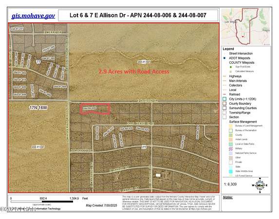 Price adjusted to sell quickly! Must See this Gorgeous 2.9-acre parcel with stunning views of the Hualapai Mountains, located in the coveted Lake Havasu Estates, Unit 14 - the closest section to the mountains and surrounded by over 20,000-acre of Federal land for maximum privacy. Easy access on county maintained roads. Lush with Joshua trees, Ocotillo, Beavertail, wildflowers, and more - it's like owning your own desert park. NO HOA or flood zone. Borders thousands of acres of government land. Picturesque-Pristine -Perfect for off-grid living or a serene escape. This listing is for two lots APN 244-08-006 (1.20 Acres) and 244-08-007 (1.70 Acres) being sold together for a total of 2.90-acres. Elevation: 2,854