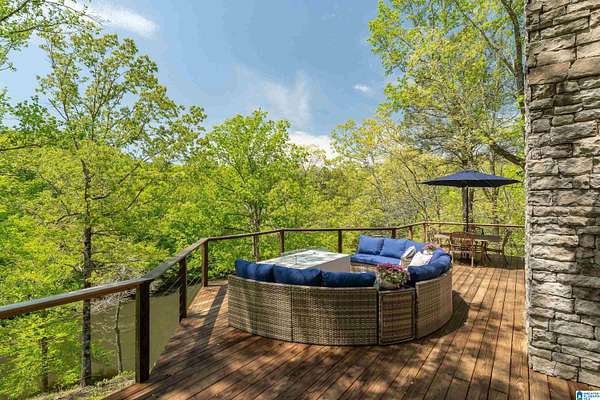 Discover a truly one-of-a-kind, castle-inspired home situated on over 6 private acres in Helena with beautiful lakeside views. This exceptional property offers the rare combination of space, privacy, and setting, with a private drive that feels like a true retreat. The home is surrounded by mature landscaping and features an expansive deck overlooking the water, perfect for enjoying the natural surroundings. Inside, you'll find an updated kitchen with new appliances, fresh interior paint, and a flex room ideal for an office, dining area, or additional bedroom. The fully finished basement includes a full bathroom and provides valuable additional living space. Additional highlights include a main-level garage and access to the water for fishing, canoeing, or relaxing. Enjoy the peace and privacy of acreage living while remaining just minutes from shopping, dining, and interstate access--a rare opportunity in an ideal Helena location.