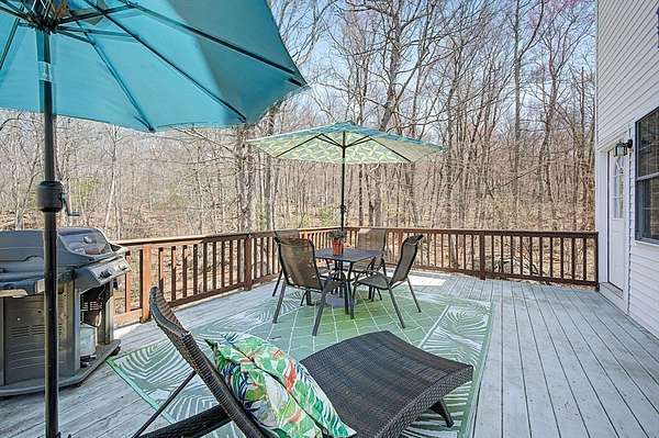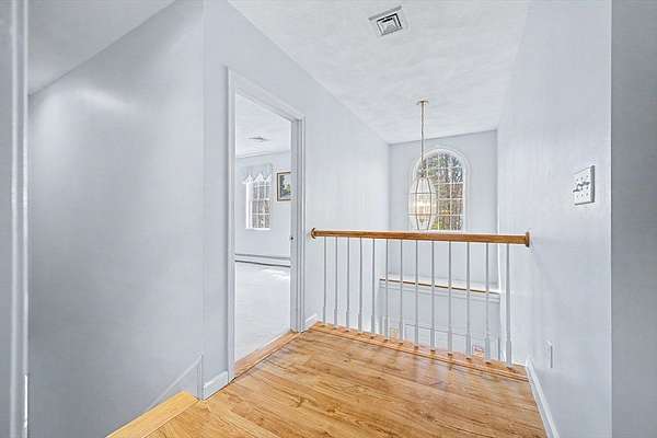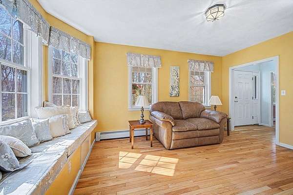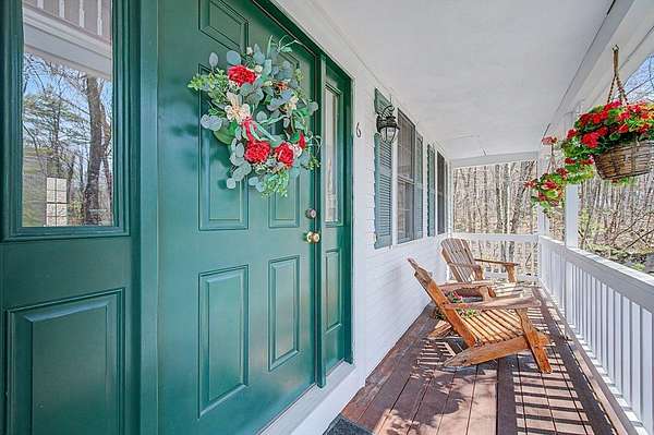 Welcome to beautiful 6 Field Pond Road nestled on two private and wooded acres! The inviting farmers' porch greets you as you enter the front door. The first floor has hardwood flooring throughout. Open kitchen and family room with views to the huge composite deck and woods behind . Kitchen has SS appliances, quartz counter tops and breakfast bar, as well as large eating area and door to deck. Family room has wood burning fire place. First floor office has bay window with window seat. Bedrooms are spacious and primary bedroom has vaulted ceiling, a lovely updated shower, ceiling fan, and a walk in closet. Lower level is a walk out to the backyard. Sellers have done major updates to the home including new high end propane heating system ( replacing former oil heat) in 2021. Driveway replaced in 2025. Newly finished basement with new half bath in 2024. New high efficiency AC units in 2023. With conservation land right behind your backyard, this home has everything!