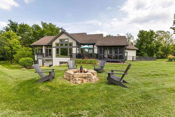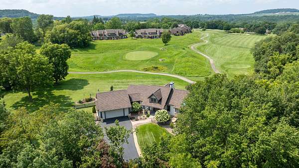 Country Club Living in the Heart of The Galena Territory! Enjoy Exclusive, Prime Views of the East Course's 8th and 9th Holes from this Stunning 4BD/3.5BA Hillside Home Designed by Straka Johnson Architects. Open-Concept Floor Plan Features Floor-to-Ceiling Limestone Fireplace Showcased by Built-In Bookcase & Wine Bar. Vaulted Wood Ceilings & Engineered Hardwood Floors Complete the Warm, Inviting Atmosphere. Gourmet Kitchen Highlights Upgraded Cabinetry, Crown Molding, Cambria Quartz Countertops, Newer Samsung Refrigerator and Dishwasher, Island with Counter Seating. Vaulted Wood Ceilings Continue into the Spacious Main-Level Suite where a Clawfoot Bathtub, Separate Shower with Steam Feature and Private Deck Create a Spa-Like Escape. Walk-Out Lower Level Includes 3 Bedrooms, 2 with Patio Access; 2 Full Baths - 1 has Steam Feature, Theater Room, Bonus Room with Cedar Closet, and Plumbing Roughed-In for Wet Bar or Vanity. Outdoor Amenities Include TREX Decking, Screened Porch, 20'x40' Split Rail Fenced Area, and the Infamous Limestone Fire Pit. Attached 2+-Car Oversized Garage has Built-In Storage Shelving, Access to Finished Attic Ideal for Office or Studio! Additional Upgrades Include HVAC (2023), LG WashTower, VinoTemp Wine & Beverage Cooler, Exterior Paint, Tinted Windows, Carpeting. Utility Option to Access NICOR Gas, Sand Prairie Fiber Internet. Enjoy Unobstructed Sunset Views Over the 9th Fairway. Enjoy Galena Territory Owners Club and all Amenities: Indoor and Outdoor Pools, Fitness Center, Trails, Tennis, Pickleball, Marina, Shenandoah Riding Center & More! Easy Access to Eagle Ridge Resort's Outstanding Golf Courses, Driving Range, Lodge & Stonedrift Spa, and Hot Air Balloon Adventures. This is Your Hole in One! One seller is a real estate licensee.